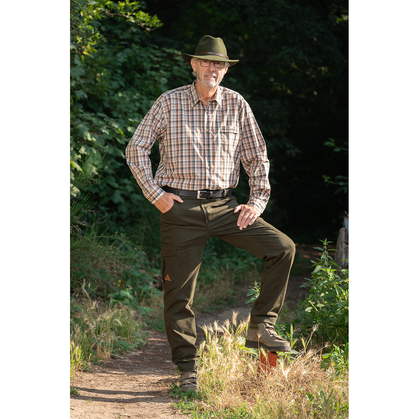 Die Comfortjeans von Schmidt ist ein Sinnbild für Funktionalität und Komfort. Mit ihrer oliven Farbe und dem klassischen 5-Pocket Style vereint sie Stil und Praktikabilität in einem Kleidungsstück. Die Beintaschen mit Messereinschub und der Dehnbund sorgen für maximale Bequemlichkeit, egal ob beim einfachen Spaziergang in der Natur oder bei Jagdausflügen. Das Schmidt-Emblem auf der rechten Beintasche verleiht der Jeans einen individuellen Touch und unterstreicht ihre Vielseitigkeit.
