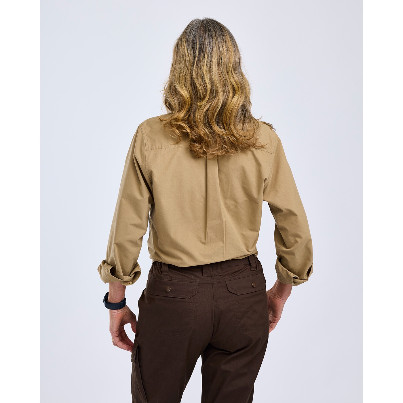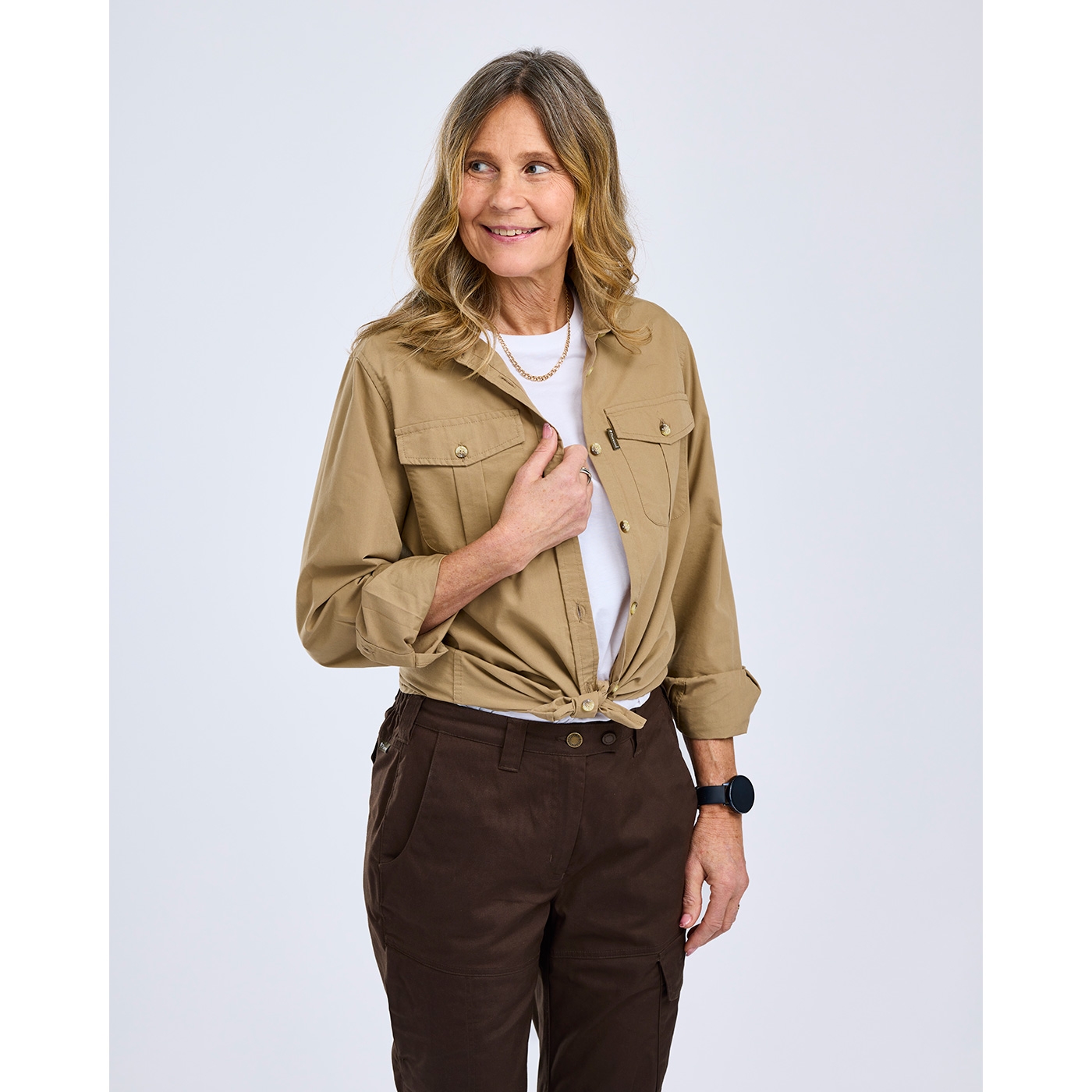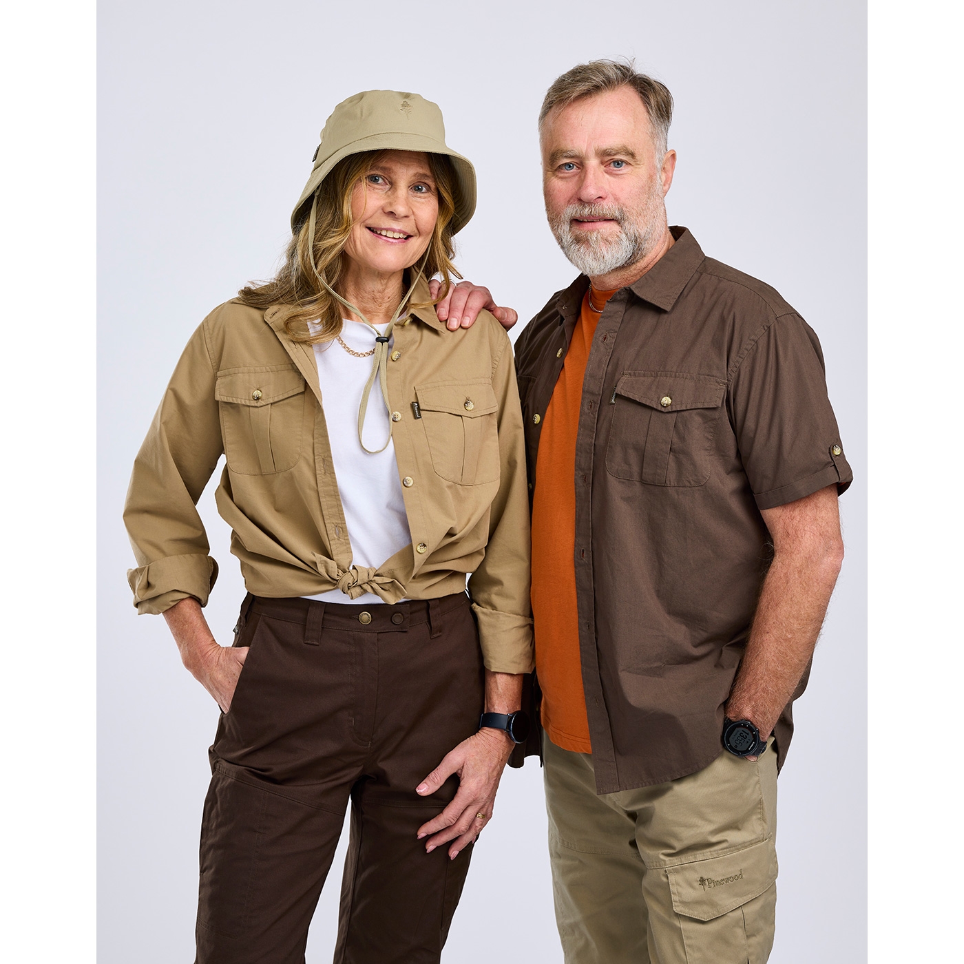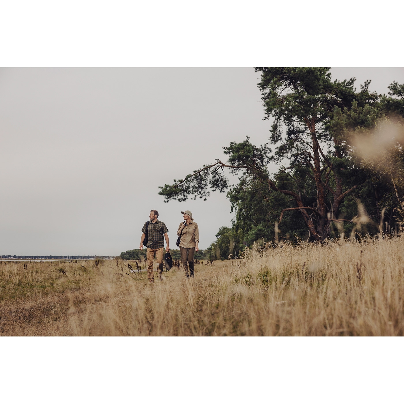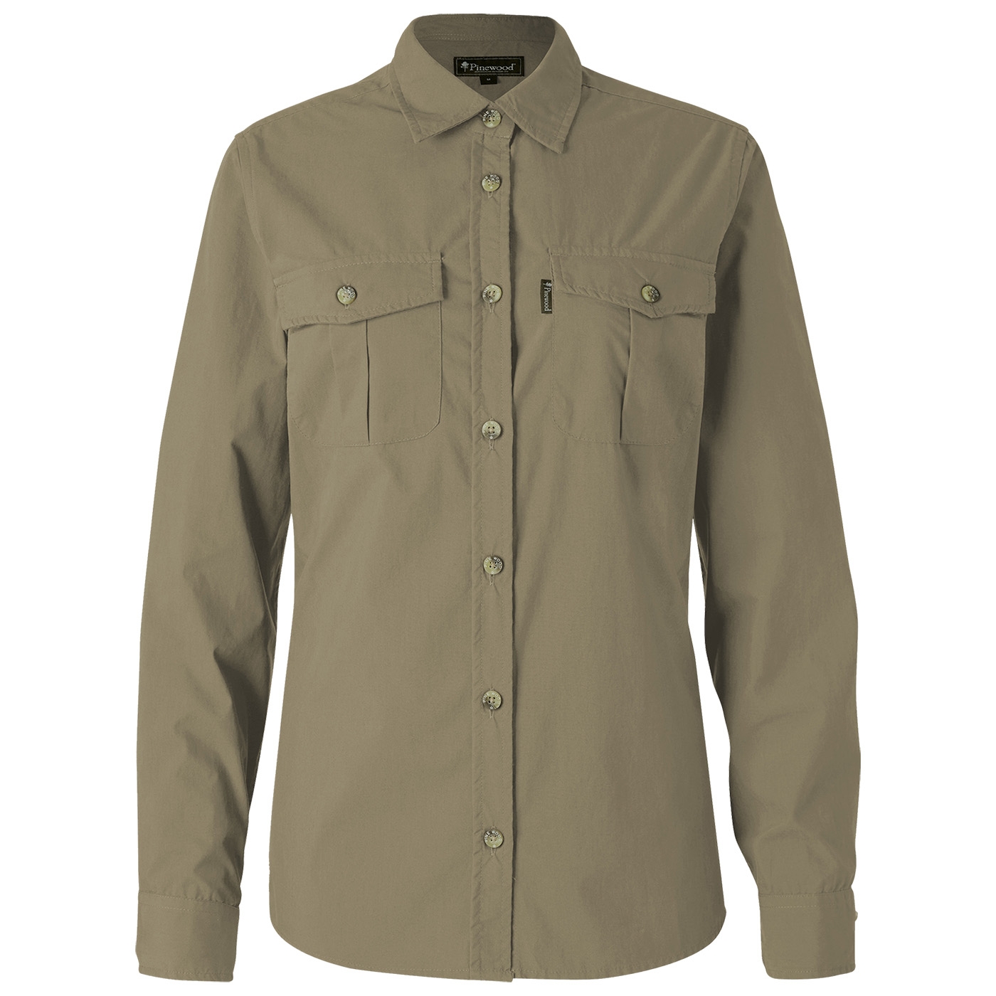 Die Damenbluse Safari von Pinewood - Ihre perfekte Begleitung für aktive Tage! Diese klassische Bluse im femininen Schnitt garantiert ein angenehmes Tragegefühl. Ob im Gelände oder auf Reisen, die Safari Bluse ist stets die richtige Wahl. Praktisch ausgestattet mit durchgehender Knopfleiste und 2 aufgesetzten Brusttaschen mit Patten und Knopfverschluss. Dank der eleganten Passform und dem zeitlosen Design sowie mit abgerundetem Saum versehen, schmeichelt sie gekonnt jeder Figur. Das Material ist weich und vorgewaschen, in der Haptik schön samtig. Die Baumwoll-Polyester-Mischung sorgt nicht nur für ein angenehmes Tragegefühl, sondern auch für einen verbesserten Feuchtigkeitstransport, so ist die Bluse pflegeleicht und lässt sich obendrein schnell wieder trocknen, falls es mal etwas schweißtreibender zugehen sollte.