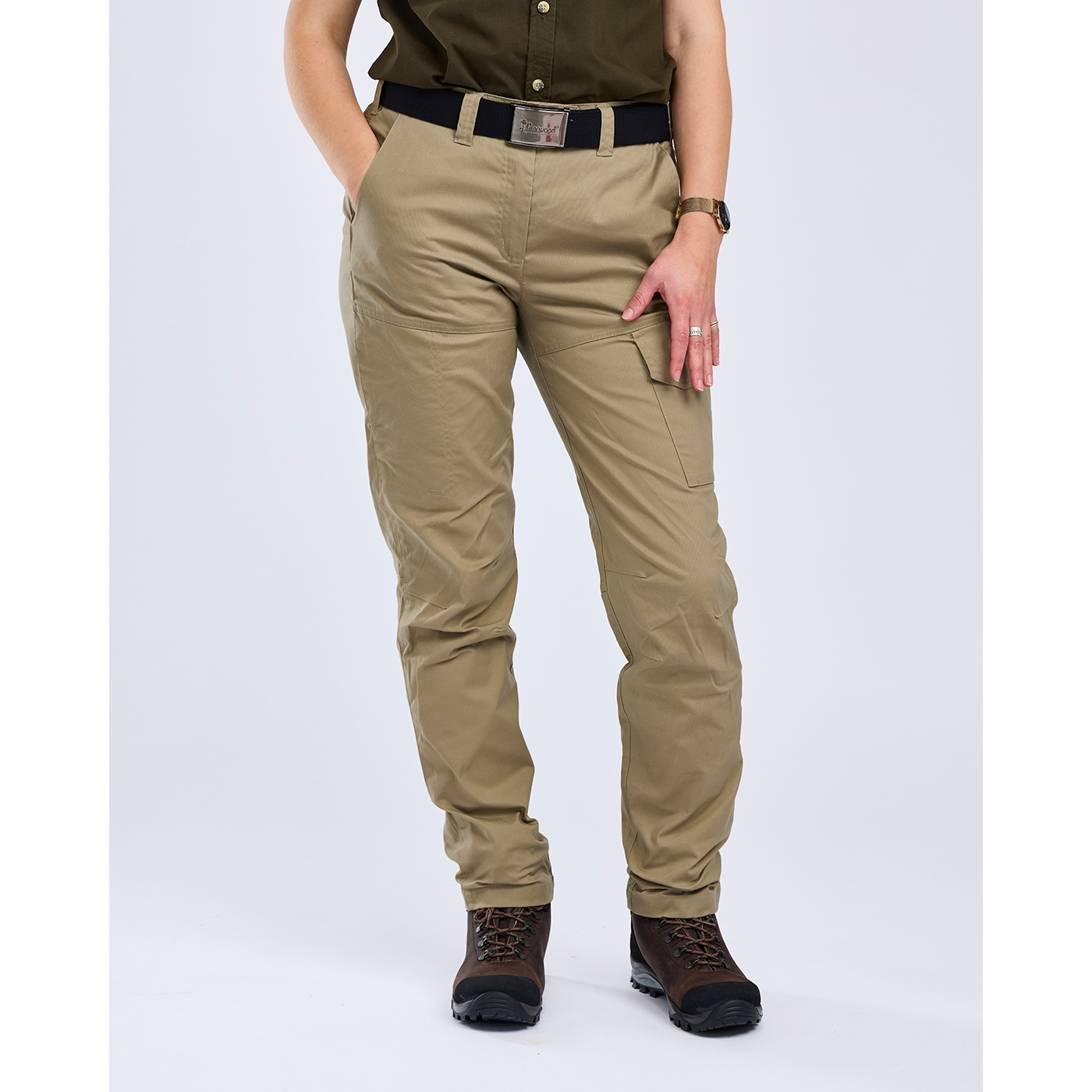 Vielseitige Allround-Damen-Hose für alltägliche Abenteuer, mit wasserabweisenden Eigenschaften und gewachstem Finish, hier steht höchster Tragekomfort im Vordergrund! Die Finnveden Outdoorhose für Damen von Pinewood überzeugt durch ihre Vielseitigkeit. Gefertigt aus TC-Gewebe mit Stretchanteil für optimalen Bequemlichkeit. Einen elastischen Dehnbund mit Gürtelschlaufen und die vorgeformten Kniebereiche gewährleistet eine gute Passform. Funktionale Taschen bieten ausreichend Stauraum, 2 seitliche Eingrifftaschen, 2 Gesäßtaschen mit Patten, 1 Längs-Reißverschlusstasche am rechten Bein und 1 Blasebalg-Tasche mit Patte und Druckknopfverschluss am linken Oberschenkel. Ein besonderes Extra: Falls zusätzliche Länge benötigt wird, kann der Saum einfach geöffnet werden, um die Hose um ca. 5cm zu verlängern. Ein unverzichtbares Must-have für Ihre Garderobe, ideal für alle Arten von Jagd- und Outdoor-Aktivitäten. Waschbar bei 40°C.