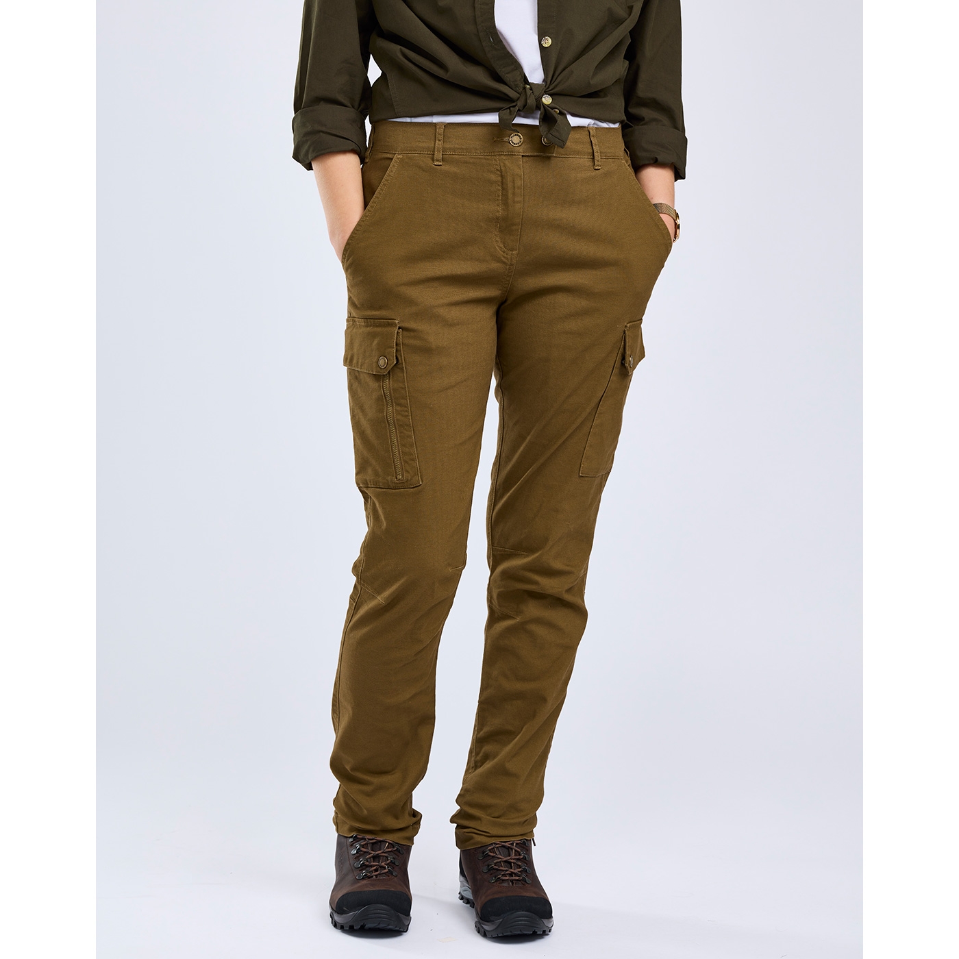 Die Damen Vintage Canvas Outdoorhose von Pinewood besticht durch ihren außergewöhnlichen Tragekomfort. Bequem und vielseitig aus strapazierfähigem 4-Wege-Stretch. Das vorgewaschene Canvas-Material ist weich, aber robust. Elastischer Bund mit Gürtelschlaufen für optimale Bewegungsfreiheit. Funktionale Taschen sorgen für genügend Stauraum, 2 seitliche Einschubtaschen, 2 Gesäßtaschen mit Druckknopfverschluss und 1 Beintasche mit Reißverschluss, machen die Hose allroundtauglich. Lässig und dezent genug für den Alltag, funktional genug für Jagd und Outdoor.