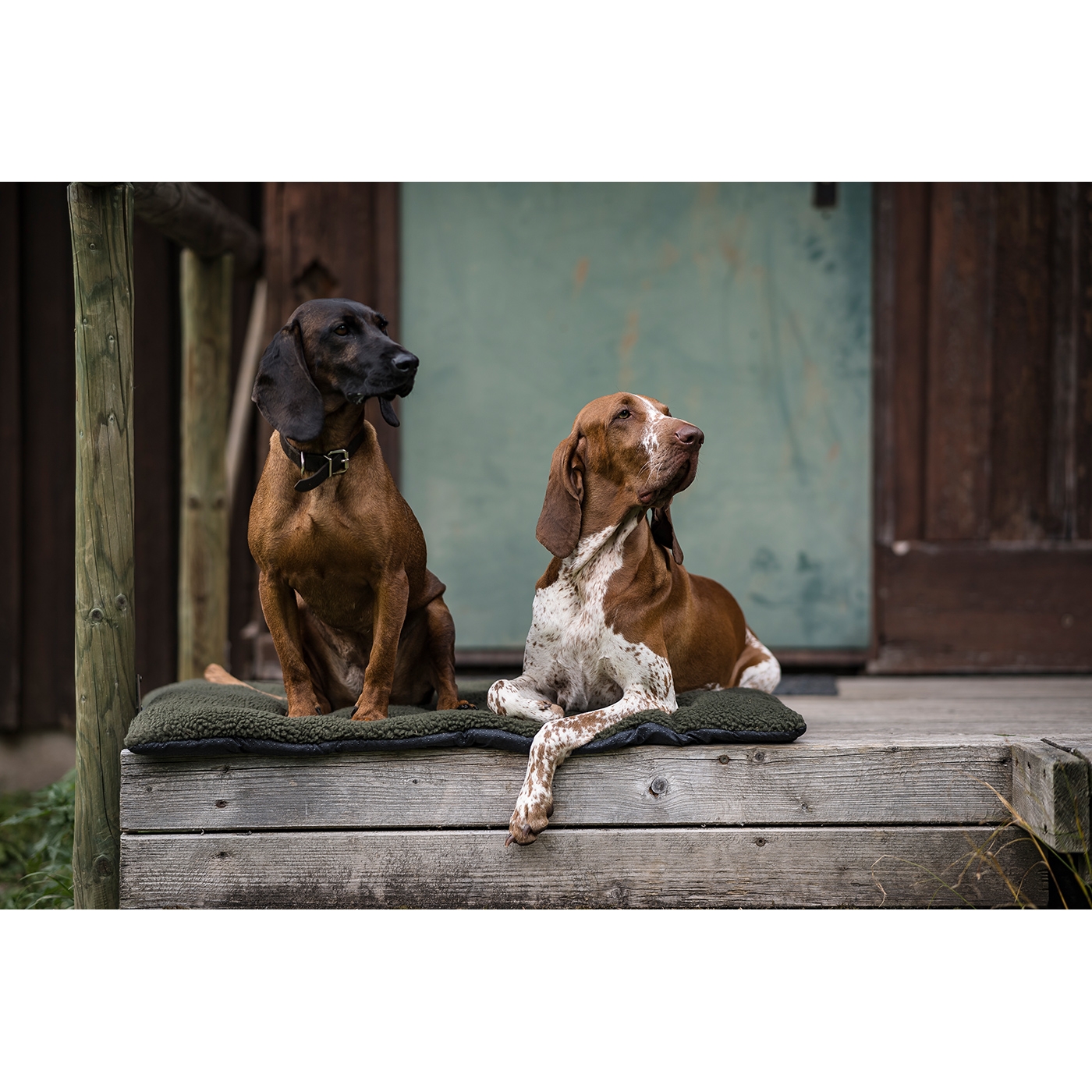 Das Deerhunter Hundebett ist ein gepolstertes Kissen, die deinem Jagdhund nach einem langen Tag im Revier einen warmen und bequemen Ruheplatz bietet. Die weiche Oberseite sorgt für Komfort, während die rutschfeste Unterseite das Decke auch auf glatten Oberflächen – in der Hütte, im Auto oder zu Hause – sicher an Ort und Stelle hält. Für arbeitseifrige Hunde gemacht, ist sie maschinenwaschbar und leicht zu reinigen.