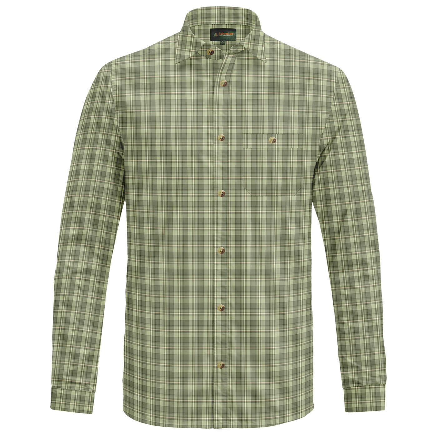 Klassisches Karohemd von Schmidt mit Umlegekragen – der perfekte Begleiter für Ihr nächstes Outdoor-Abenteuer oder den Jagdausflug. Hergestellt aus hautsympathischer Baumwolle bietet dieses Hemd höchsten Tragekomfort, selbst bei längeren Einsätzen im Freien. Die bequeme Weite und die optimale Rückenlänge sorgen für eine ideale Passform. Die durchgehende Knopfleiste ist mit stilvollen Knöpfen in Naturoptik versehen, zudem gibt es links eine praktische Brusttasche mit Knopfverschluss für zusätzlichen Stauraum von kleinen Utensilien. Ob auf der Pirsch oder beim Wandern – mit diesem Karohemd sind Sie immer gut ausgestattet.