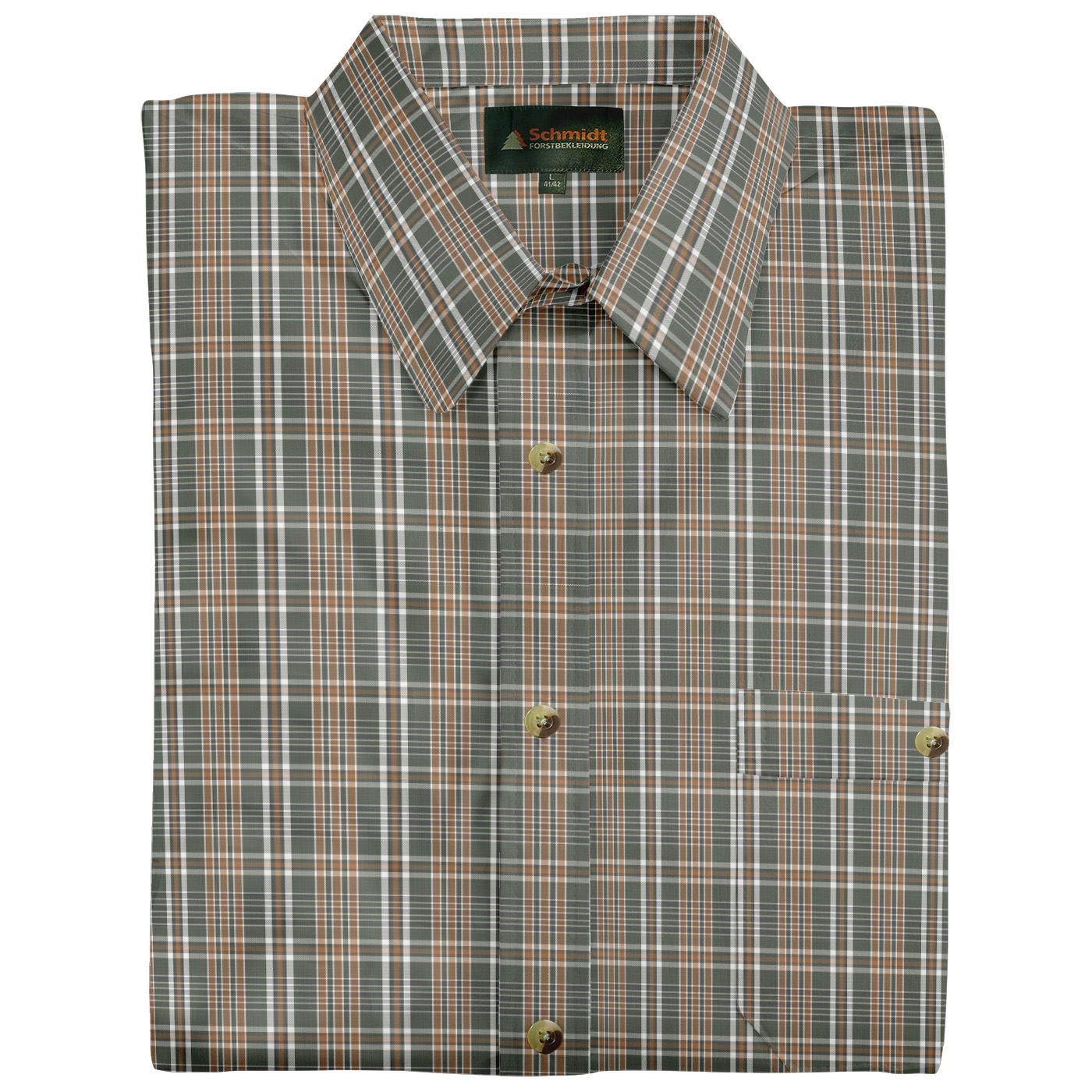Klassisches kurzarm Karohemd von Schmidt mit Umlegekragen – der perfekte Begleiter für Ihr nächstes Outdoor-Abenteuer oder den Jagdausflug. Hergestellt aus hautsympathischer Baumwolle bietet dieses Hemd höchsten Tragekomfort, selbst bei längeren Einsätzen im Freien. Die bequeme Weite und die optimale Rückenlänge sorgen für eine ideale Passform. Die durchgehende Knopfleiste ist mit stilvollen Knöpfen in Naturoptik versehen, zudem gibt es links eine praktische Brusttasche mit Knopfverschluss für zusätzlichen Stauraum von kleinen Utensilien. Ob auf der Pirsch oder beim Wandern – mit diesem Karohemd sind Sie immer gut ausgestattet.