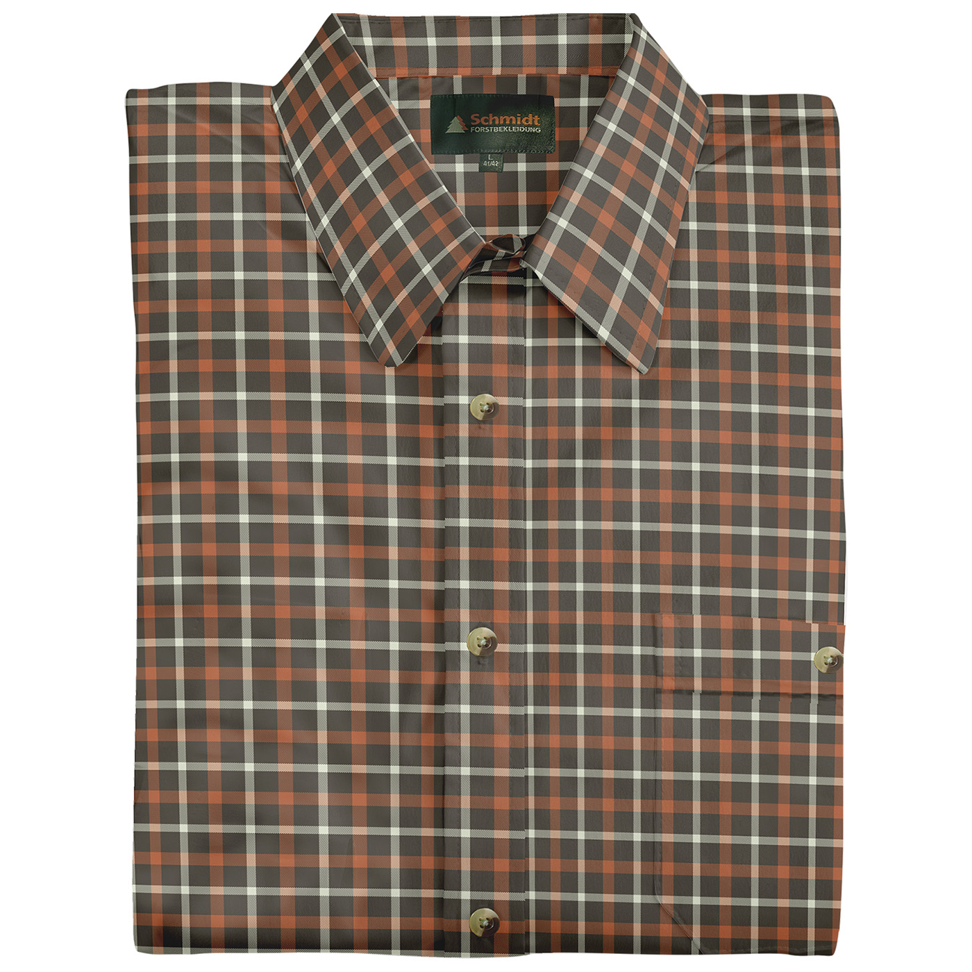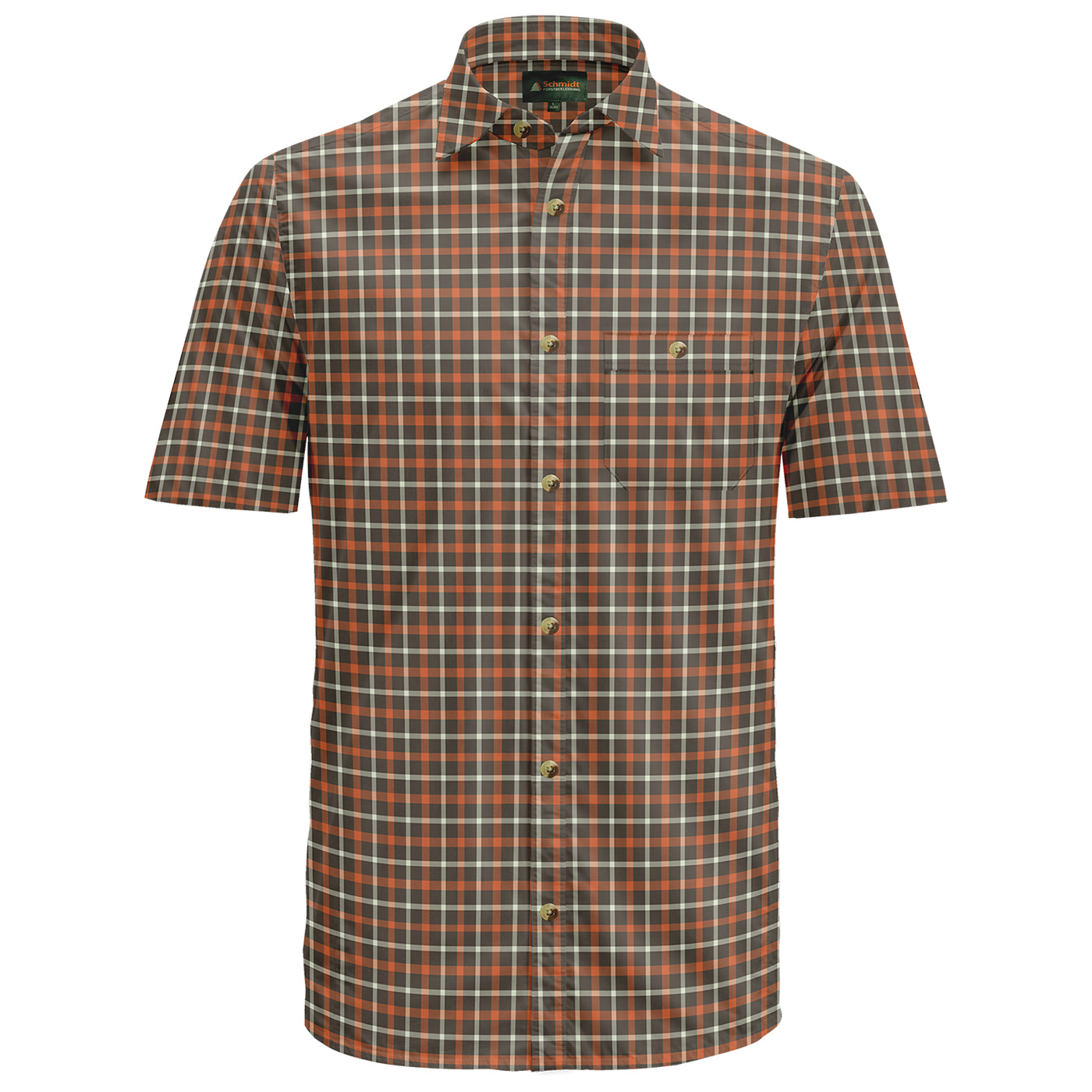 Klassisches kurzarm Karohemd von Schmidt mit Umlegekragen – der perfekte Begleiter für Ihr nächstes Outdoor-Abenteuer oder den Jagdausflug. Hergestellt aus hautsympathischer Baumwolle bietet dieses Hemd höchsten Tragekomfort, selbst bei längeren Einsätzen im Freien. Die bequeme Weite und die optimale Rückenlänge sorgen für eine ideale Passform. Die durchgehende Knopfleiste ist mit stilvollen Knöpfen in Naturoptik versehen, zudem gibt es links eine praktische Brusttasche mit Knopfverschluss für zusätzlichen Stauraum von kleinen Utensilien. Ob auf der Pirsch oder beim Wandern – mit diesem Karohemd sind Sie immer gut ausgestattet.