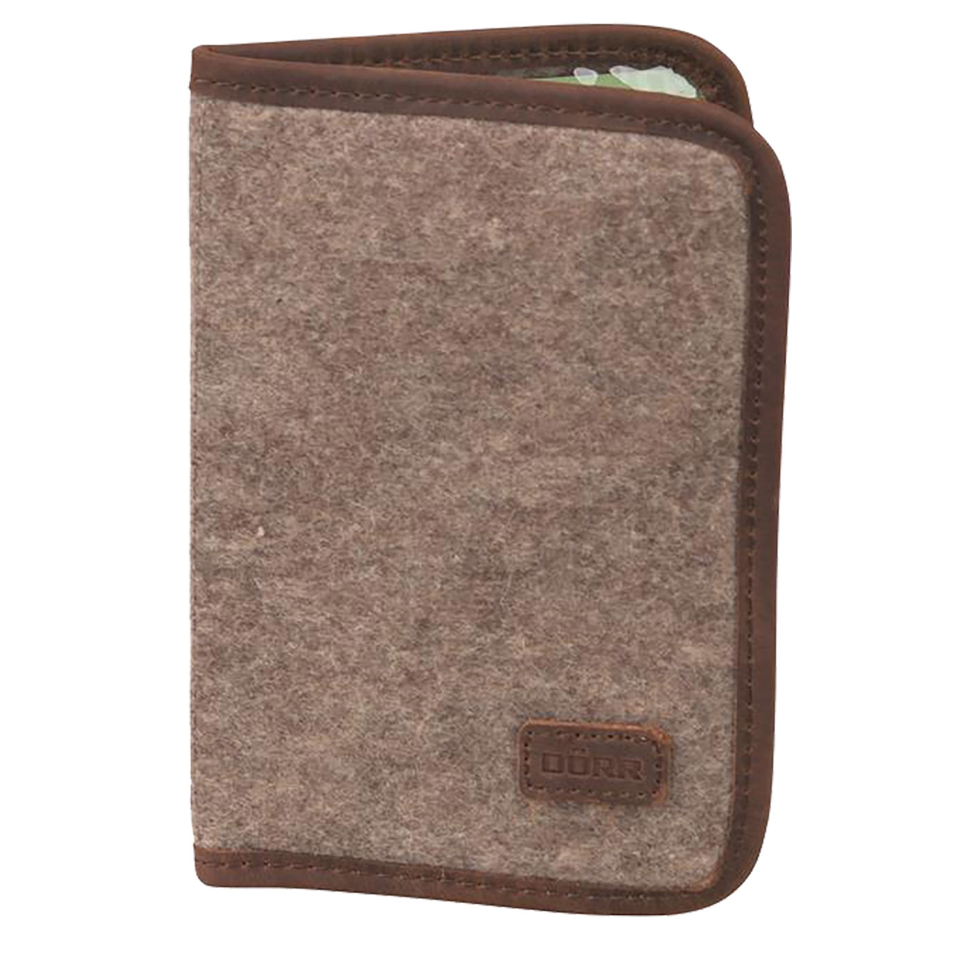Aus robustem Filz mit Echtleder-Applikationen, 2 Innenfächer mit Klarsichtfolie, passend für Jagd- und Waffenschein. Maße ca. 21,5x12,8x1,7 cm
