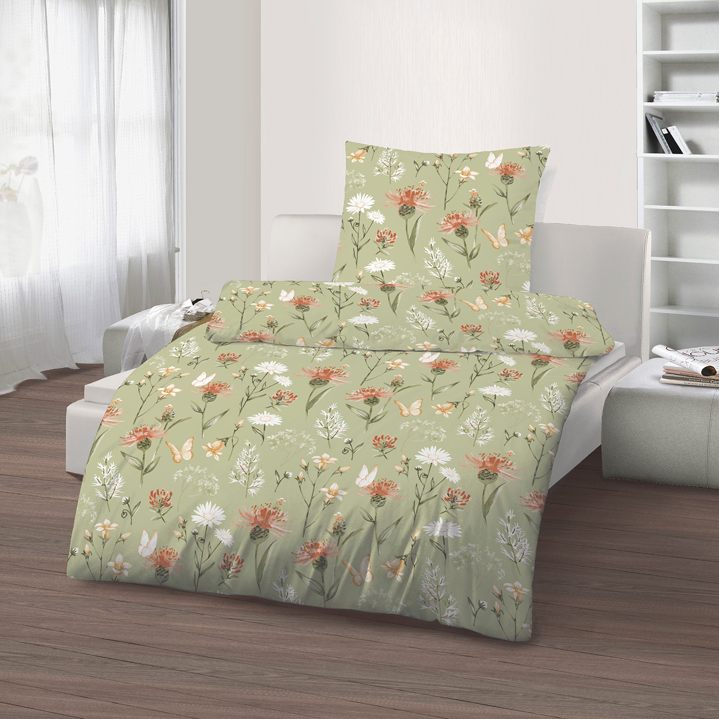 Kuschelig weiche und wohlig warme Biber Bettwäsche – die perfekte Winterbettwäsche für kalte Nächte. Diese hochwertig verarbeitete Bettwäsche bietet nicht nur exzellenten Schlafkomfort, sondern wirkt auch temperaturausgleichend. Sie ist besonders hautsympathisch und anschmiegsam, was sie zur idealen Wahl für Ihre Decke und Kissen macht. Diese sanforisierte Winter-Bettwäsche besticht durch ihr modernes Blumenwiesen-Muster. Der Deckenbezug misst ca. 135 x 200 cm und der Kissenbezug ca. 80 x 80 cm, perfekt für ein gemütliches Bett. Hergestellt aus 100% Baumwolle (20% recycled), bietet diese Bettwäsche nicht nur Komfort, sondern auch Langlebigkeit. Einfache Handhabung mit Reißverschluss. Gefertigt nach OEKO-TEX Standard 100, waschbar bei 60°C, Trockner geeignet (Schonprogramm).