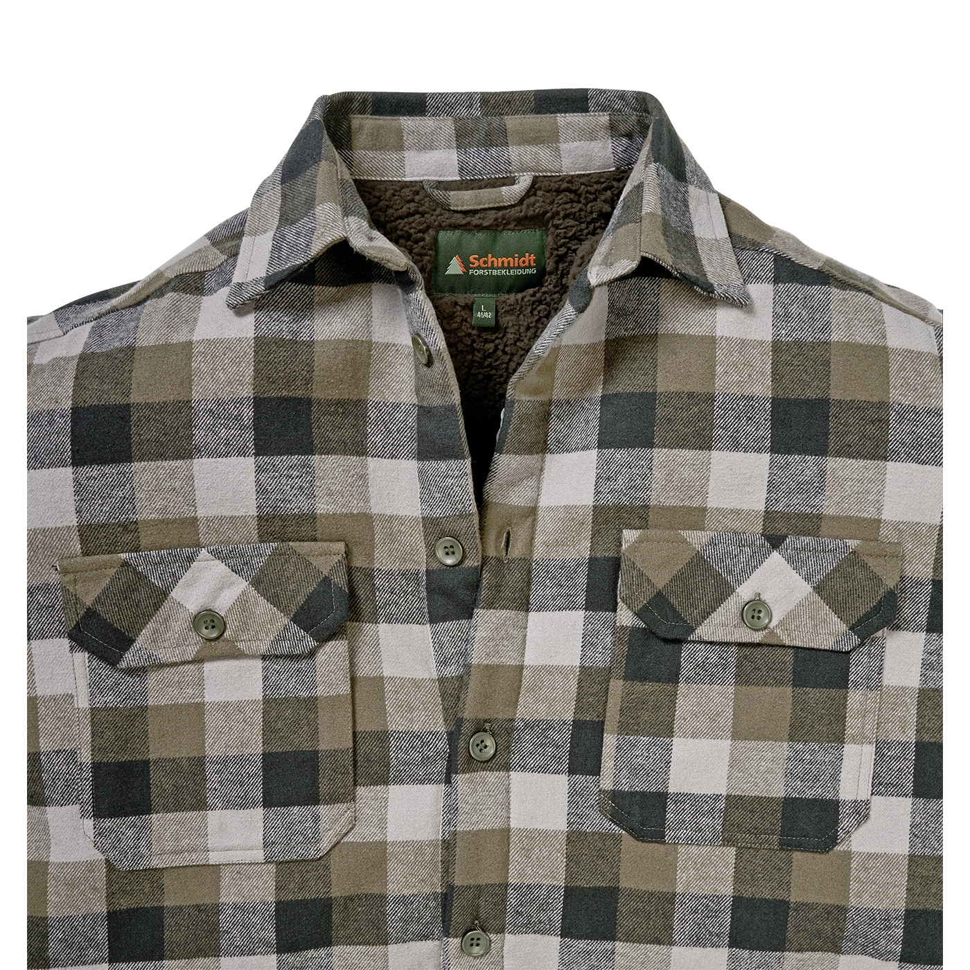 Erleben Sie den ultimativen Komfort und Stil mit dem Flanellhemd mit Teddy Innenfutter von Schmidt. Diese karierte Flanellhemd-Jacke vereint funktionale Wärme mit modernem Design. Das olive Teddyfutter innen im Vorder- und Rückenbereich sorgt für eine extra Portion Behaglichkeit, während die hautsympathische Qualität Ihnen ein angenehmes Tragegefühl bietet. Die Ärmel sind für eine bessere Beweglichkeit mit leichtem, angerautem Fleece abgefüttert. Mit zwei praktischen, verschließbaren Brusttaschen ausgestattet, eignet sich dieses Hemd hervorragend für Jagd- und Outdoor-Aktivitäten. Die bequeme Weite und Rückenlänge garantieren zudem optimalen Komfort und Bewegungsfreiheit. Perfekt für den Winter und stilvoll zugleich.