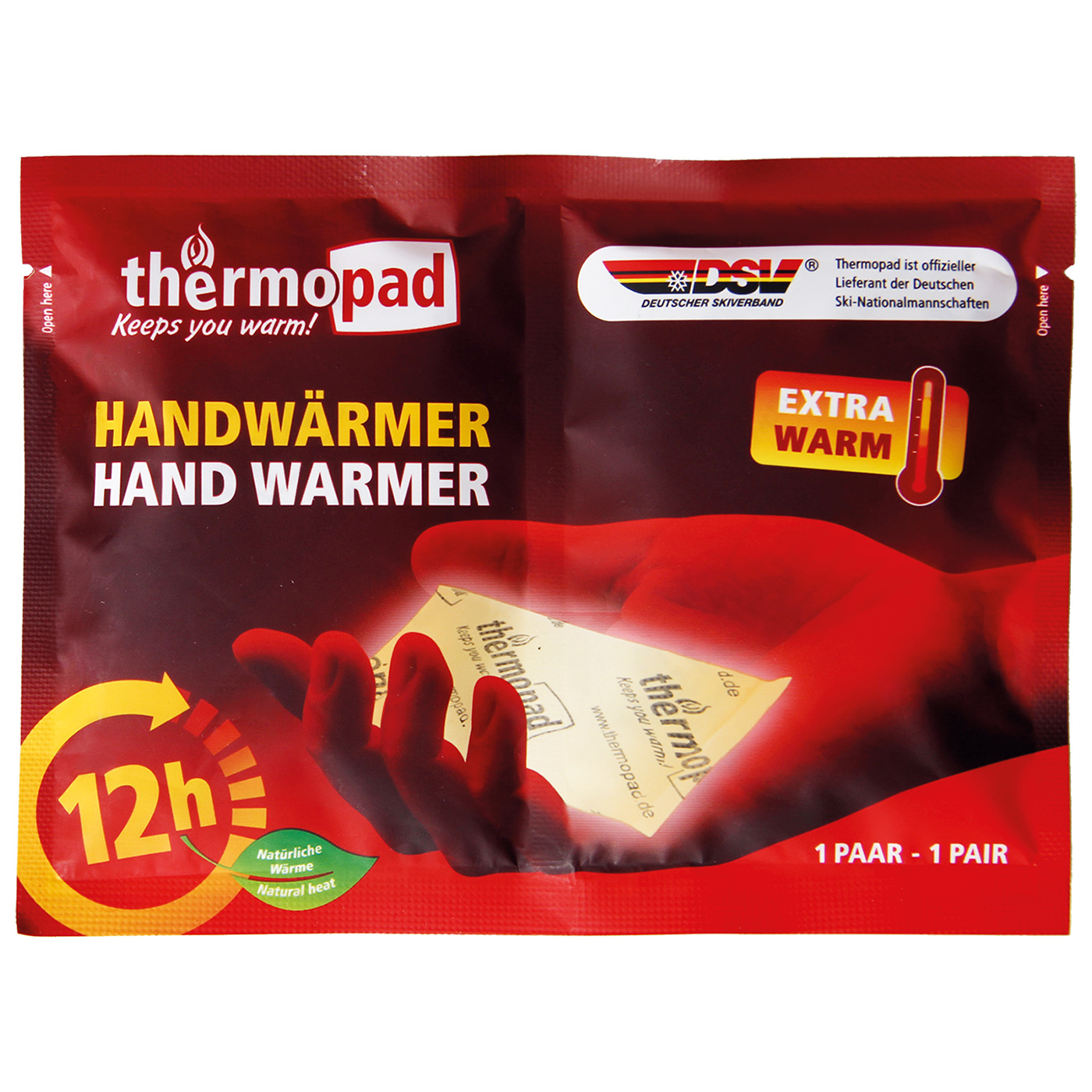 Luftaktivierter Handwärmer. Einfach in die Hosentasche, Jackentasche oder in die Handschuhe stecken. 12 Stunden EXTRA WARM. Ideal für alle Outdooraktivitäten. 1 Paar.