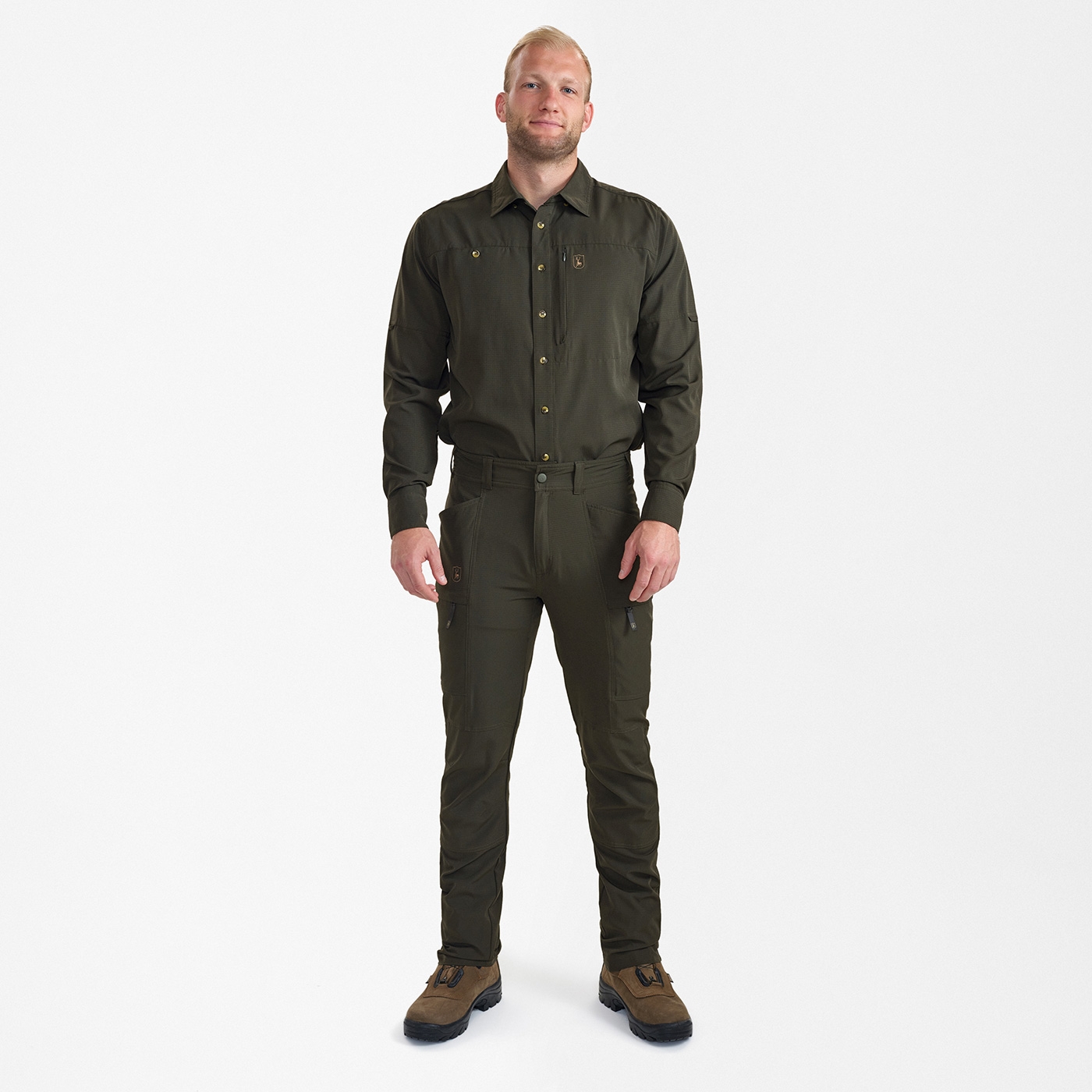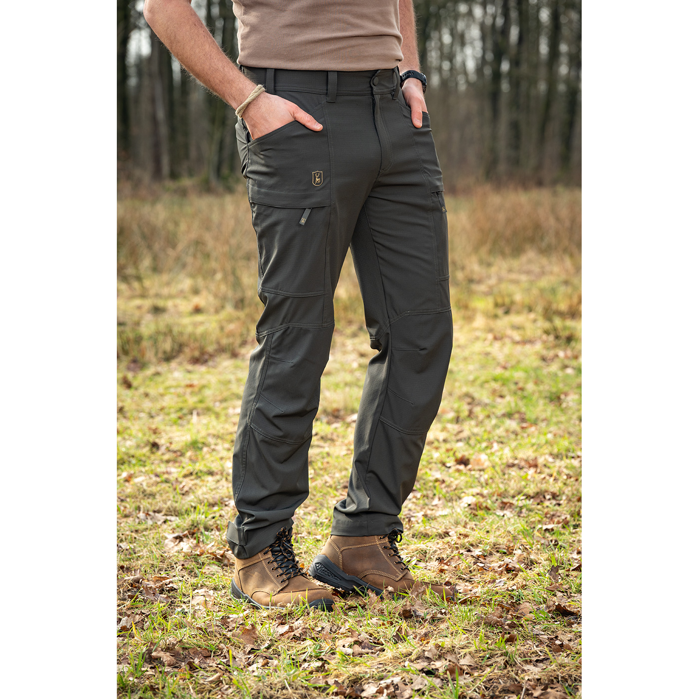 Die Deerhunter Hose Canopy ist leicht, bequem, atmungsaktiv und bietet eine komfortable Belüftung bei warmem Klima. Diese funktionale Hose mit 4-Wege-Stretch gewährleistet eine optimale Bewegungsfreiheit. Der elastische Bund mit Gummizug im Rückenteil, vorgeformte Knie und verstellbare Knöchelriemen sorgen für einen hohen Tragekomfort. Funktionale Taschen: 2 seitliche Einschubtaschen sowie 2 aufgesetzte Beintaschen mit Reißverschluss bieten ausreichend Stauraum für wichtige Utensilien. Das leichte, atmungsaktive und schnelltrocknende RipStop-Gewebe sorgt für optimalen Komfort – die ideale Hose ob bei der Pirsch durch die Wildnis oder beim Outdoor-Abenteuer.