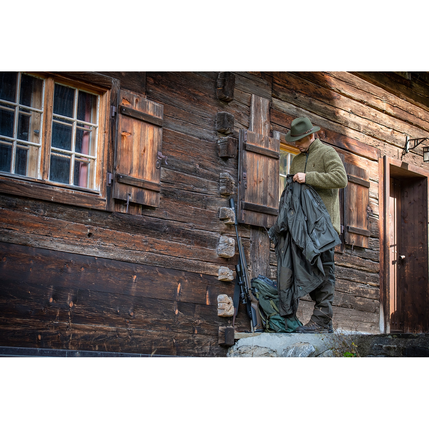 Die Hose RAM mit Verstärkung von DEERHUNTER ist ideal für alle anspruchsvollen Jagdanforderungen und trotzt extremen Wetter. Mit dem elastischen, verstellbaren Bund mit Hosenträgerknöpfen und den durch Reißverschluss und Druckknöpfen verstellbaren Beinenden ist eine individuelle Passform möglich. Funktionale Taschen sorgen für ausreichend Stauraum: 2 seitliche Reißverschluss-Längs-Einschubtaschen sowie 2 aufgesetzte Beintaschen mit Patte und Druckknöpfen. Wenn es wärmer wird oder das Aktivitätsniveau steigt, ermöglichen die verdeckten Belüftungsreißverschlüsse an den Oberschenkeln angenehme Kühlung. Vorgeformte Kniebereiche und robuste Verstärkungen an der Rückseite und am unteren Hosenbein schützen vor Dornen und Gestrüpp und bieten eine hohe Strapazierfähigkeit. Ein zuverlässiger Nässeschutz ist durch die DEER-Tex® Performance Shell-Membrane, die wasserabweisende Oberflächenimprägnierung und die getapten Nähte gewährleistet. Die Hose ist atmungsaktiv, wind- und wasserdicht. Das weich gebürstete, geräuscharme 2-Wege Stretchmaterial sorgt für hohen Tragekomfort und mehr Bewegungsfreiheit.