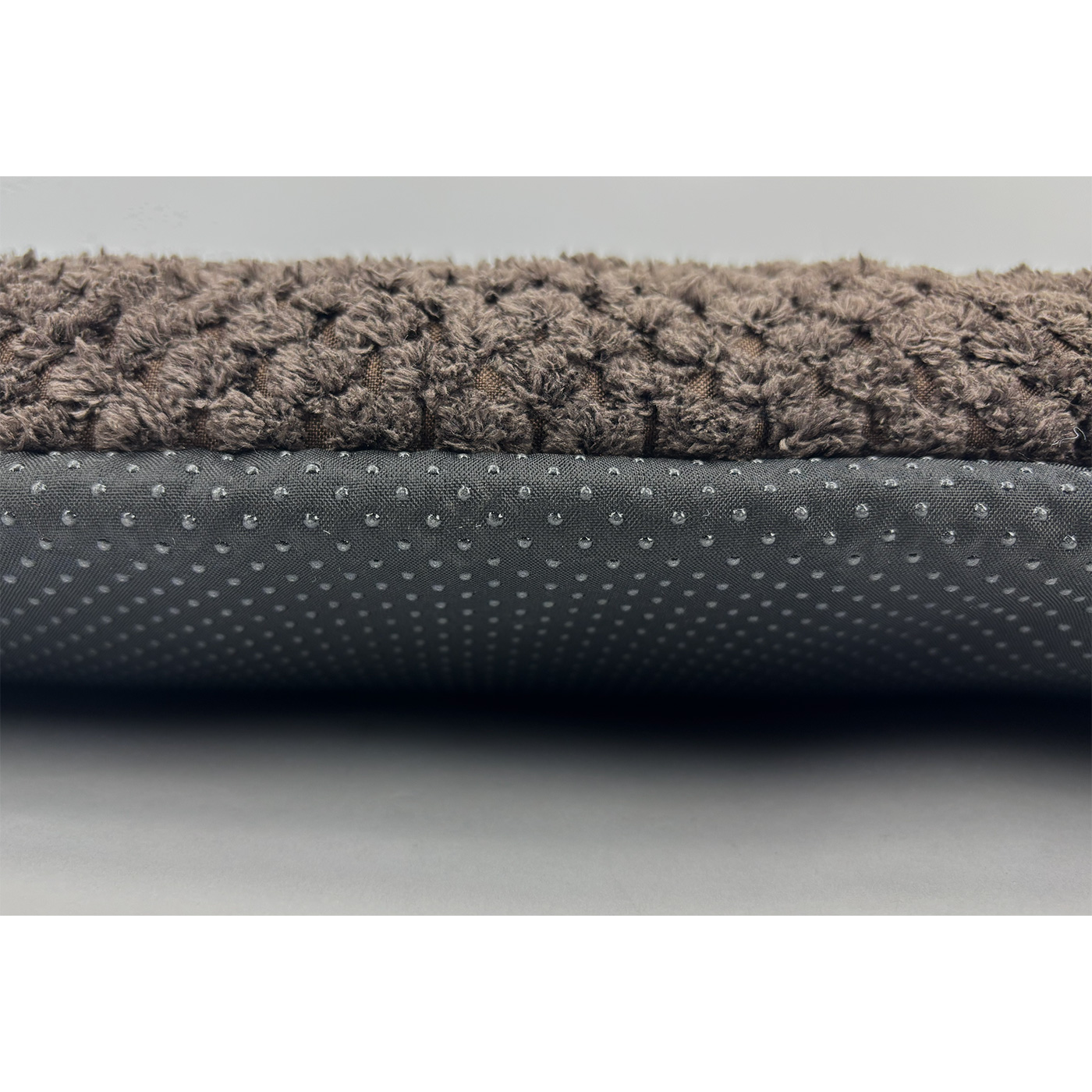 Waschbares Hundekissen Vivaldi in flauschiger Webstrukturoptik - 100 x 70cm der Marke Schmidt, besteht an der Oberseite aus einer mollig weichen Webstrukturpelz mit angenehmer Haptik in der Farbe braun. Die rutschfeste schwarze Unterseite ist mit Gumminoppen versehen, um lästiges Rutschen zu vermeiden. Die Watte hat eine ausgewogene Füllmenge, so dass das Kissen ausreichend Komfort auf harten Untergründen bietet und zugleich nicht zu stark aufträgt. Zudem ist das Hundekissen waschbar bei 30C°. Tolles Hundekissen auch für unterwegs.