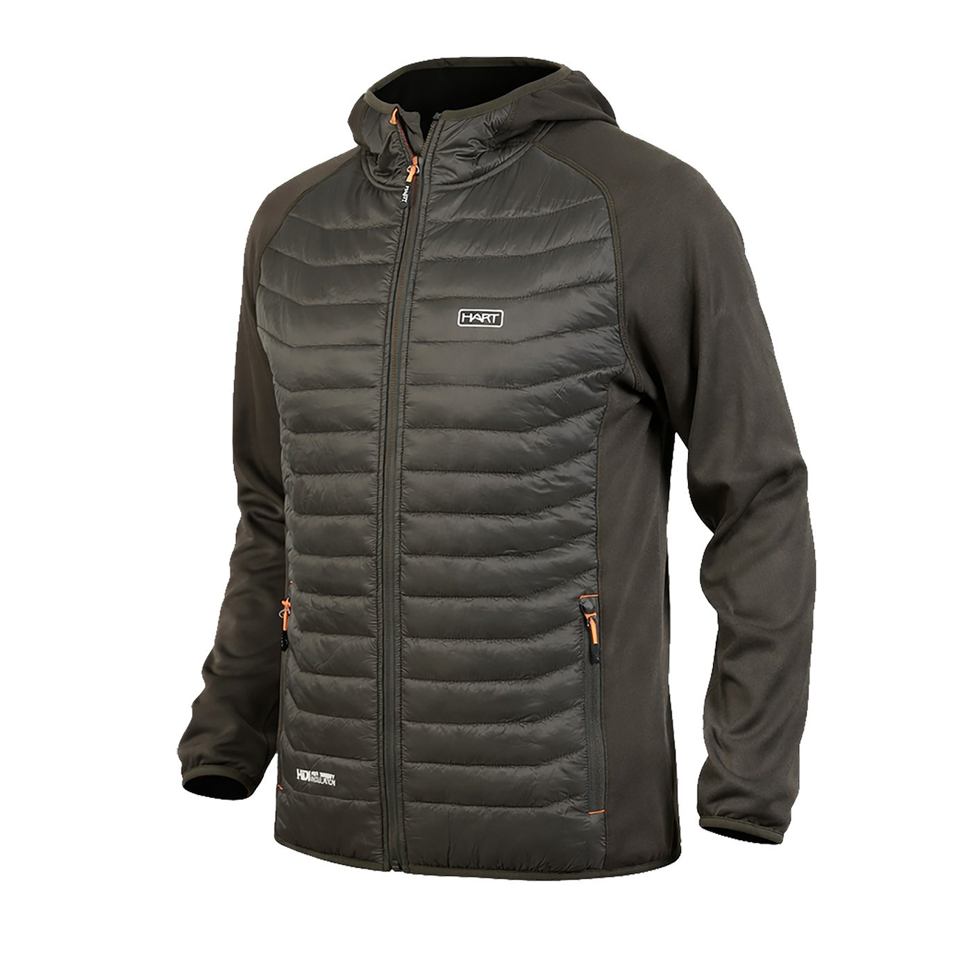 Die Hybridjacke ATMOS von HART ist die ideale Begleitung für alle Arten von Outdoor-Abenteuern. Diese vielseitige Jacke kombiniert Funktionalität und Komfort durch ihr einzigartiges Design, das in zwei Bereiche unterteilt ist: Der Vorder- und Rückbereich sind wattiert und windabweisend, während die Ärmel und die Kapuze aus wärmendem, elastischem Mikrofleece bestehen. Dies sorgt für maximale Bewegungsfreiheit und Wärmeisolierung. Die leicht zugänglichen Handwärmtaschen mit Reißverschluss bieten sicheren Stauraum für Ihre Essentials. Ob als Oberbekleidung an milden Tagen oder als wärmende Zwischenschicht bei kälteren Temperaturen – die ATMOS Hybridjacke passt sich perfekt Ihren Bedürfnissen an. Zudem ist eine kleine Tasche zum einfachen Verstauen und Transport der Jacke inklusive.