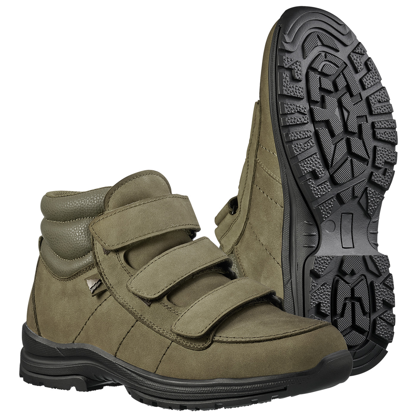 Bequemer, leichter Kletthalbstiefel aus Nubuk mit hohem Lauf- und Tragekomfort, bietet optimalen Halt und Stabilität am Fuß, Schuh mit großzügigem Einstieg, hohem gut gepolsterten Schaft, 3 Klettverschlüssen, auswechselbaren Fußbett und robuster, griffiger Gummiprofilsohle.