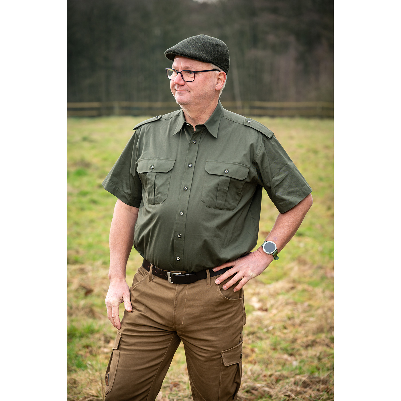 Das kurzarm Jagdhemd Meran von Schmidt gibt ein unschlagbares Gefühl von Komfort und Funktionalität bei jedem Jagdausflug. Dieses olivfarbene Halbarm-Hemd ist speziell für die Bedürfnisse von Jägern konzipiert, die beiden Brusttaschen mit Knopfverschluss bieten einen sicheren Aufbewahrungsort für kleinere Gegenstände. Durch die Schulterklappen und die Knöpfe in Horn-Optik weiß das Hemd auch optisch zu überzeugen. Hergestellt aus hochwertigen Materialien, sorgt es für eine hervorragende Belüftung und hält Sie auch bei intensiver Bewegung angenehm kühl. Die kurzen Ärmel bieten maximale Bewegungsfreiheit und verhindern ein Überhitzen, während die olivgrüne Farbe sich perfekt in die natürliche Umgebung einfügt. Egal, ob Sie stundenlang durch den Wald pirschen oder in der Hitze des Tages auf dem Hochsitz verweilen – dieses Hemd hält Sie kühl und komfortabel.