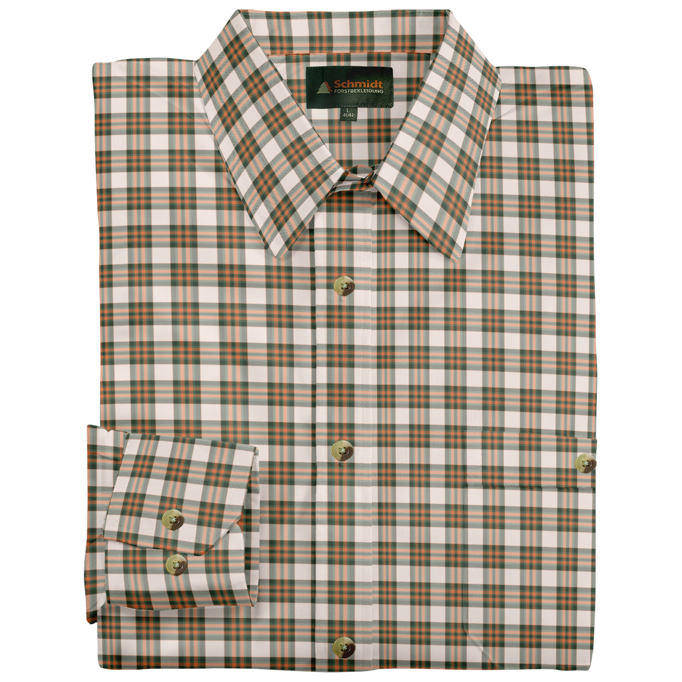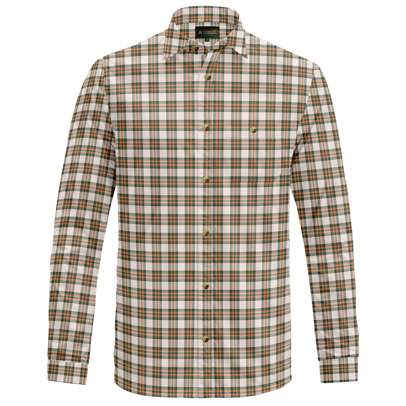 Klassisches Karohemd von Schmidt mit Umlegekragen – der perfekte Begleiter für Ihr nächstes Outdoor-Abenteuer oder den Jagdausflug. Hergestellt aus hautsympathischer Baumwolle bietet dieses Hemd höchsten Tragekomfort, selbst bei längeren Einsätzen im Freien. Die bequeme Weite und die optimale Rückenlänge sorgen für eine ideale Passform. Die durchgehende Knopfleiste ist mit stilvollen Knöpfen in Naturoptik versehen, zudem gibt es links eine praktische Brusttasche mit Knopfverschluss für zusätzlichen Stauraum von kleinen Utensilien. Ob auf der Pirsch oder beim Wandern – mit diesem Karohemd sind Sie immer gut ausgestattet.