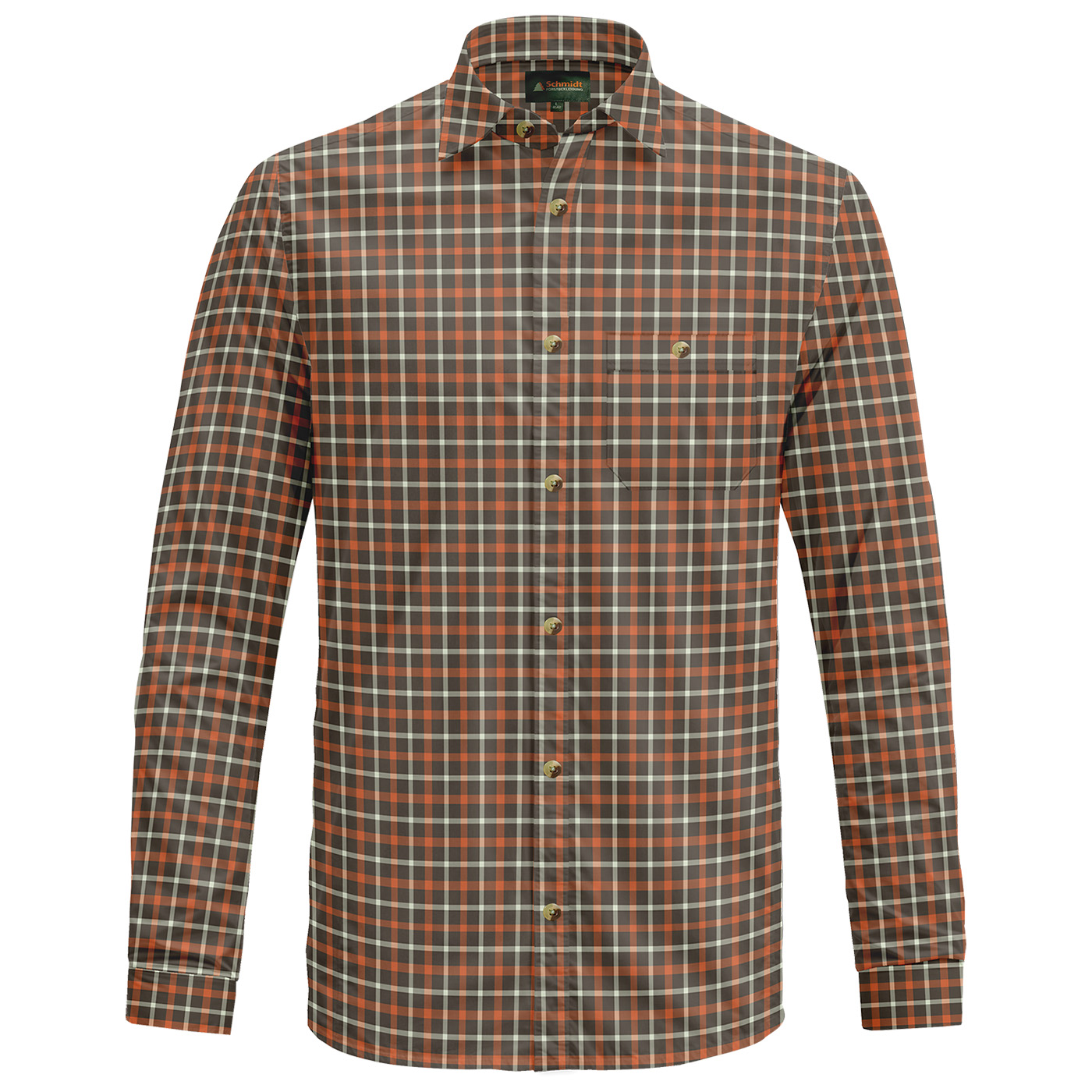 Klassisches Karohemd von Schmidt mit Umlegekragen – der perfekte Begleiter für Ihr nächstes Outdoor-Abenteuer oder den Jagdausflug. Hergestellt aus hautsympathischer Baumwolle bietet dieses Hemd höchsten Tragekomfort, selbst bei längeren Einsätzen im Freien. Die bequeme Weite und die optimale Rückenlänge sorgen für eine ideale Passform. Die durchgehende Knopfleiste ist mit stilvollen Knöpfen in Naturoptik versehen, zudem gibt es links eine praktische Brusttasche mit Knopfverschluss für zusätzlichen Stauraum von kleinen Utensilien. Ob auf der Pirsch oder beim Wandern – mit diesem Karohemd sind Sie immer gut ausgestattet.
