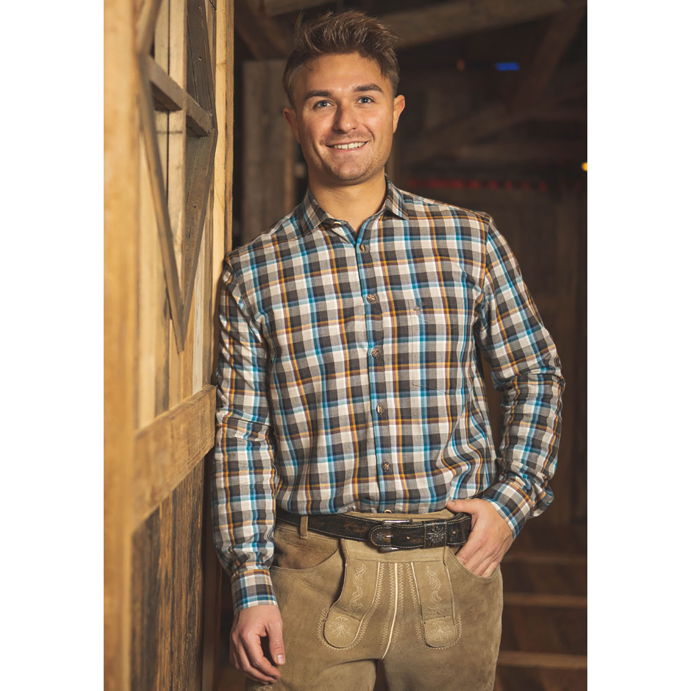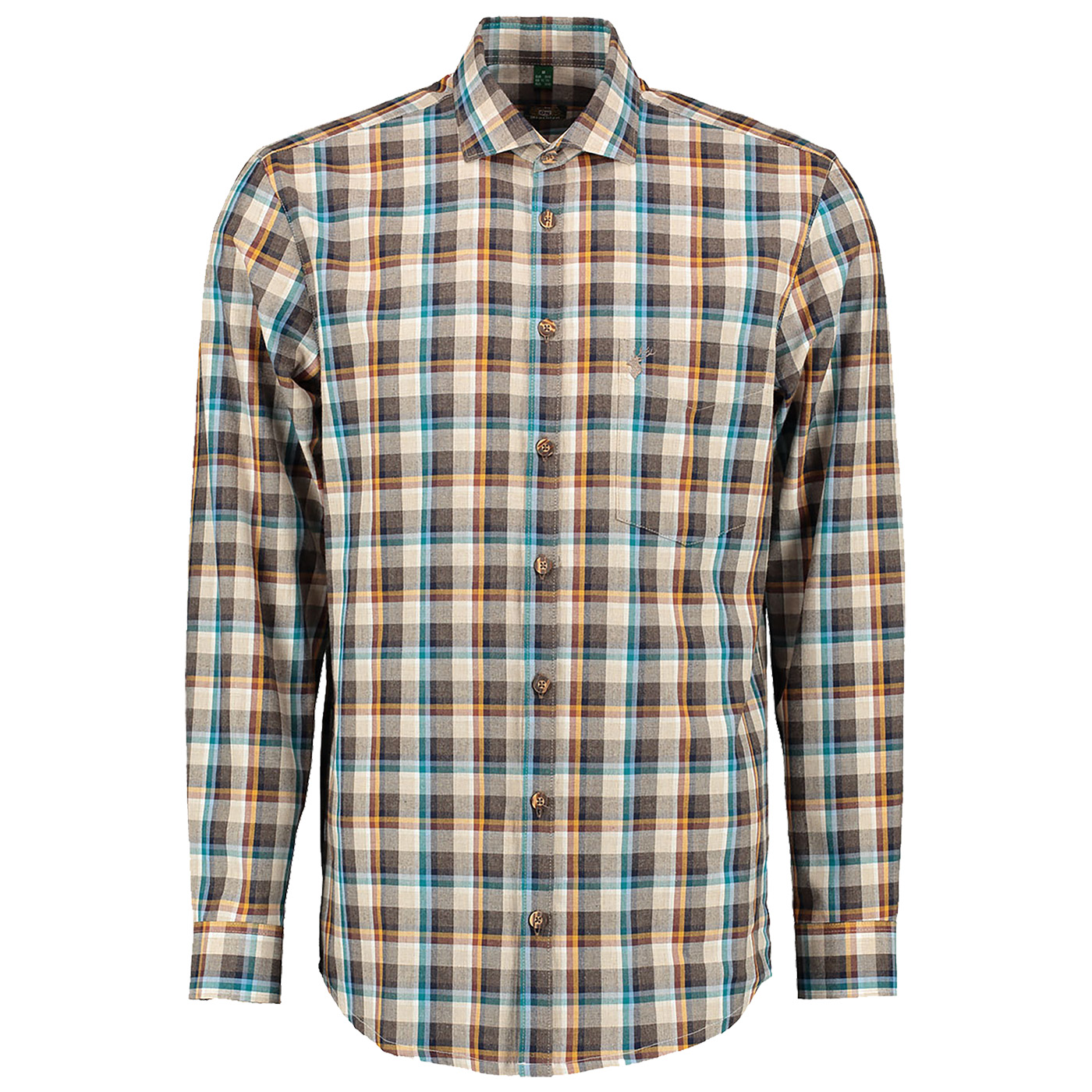 Funktionelles, bequemes Karohemd von OS-Trachten - ein tolles Langarmhemd für den Alltag. Der Haifischkragen gibt dem Look eine moderne Note, das Karomuster bleibt klassisch und ist vielseitig kombinierbar – ideal unter der Weste oder Jagdjacke. Hemd aus hautsympathischen Baumwolle, in gerader Schnittform mit zwei leichten Rückenfalten, für mehr Bequemlichkeit und ein perfektes Tragegefühl, besonders im Frühjahr und Sommer. Natürlich ist es auch passend in Herbst und Winter als Unterschicht zu jagdlichen Anlässen. Die Knöpfe in Naturoptik verleihen diesem Karohemd den jagdlichen Stil. Praktisch ist die aufgesetzte Brusttasche mit dezenter Stickerei für Kleinigkeiten. Dank des abgerundeten Saumes kann es auch bequem über der Hose getragen werden. Ob im Revier, auf dem Schießstand oder zum jagdlichen Stammtisch, dieses Hemd von OS-Trachten bietet bequemen Tragekomfort und wirkt dabei stilsicher.