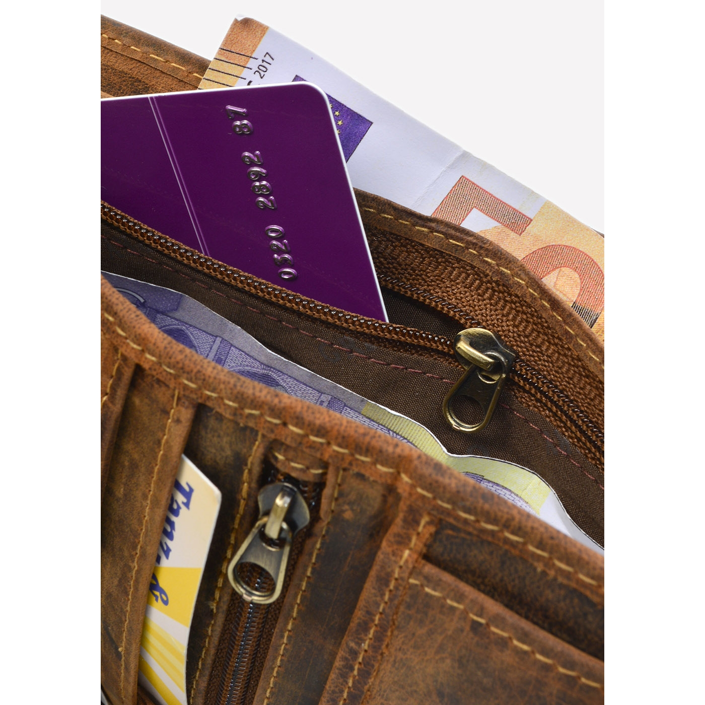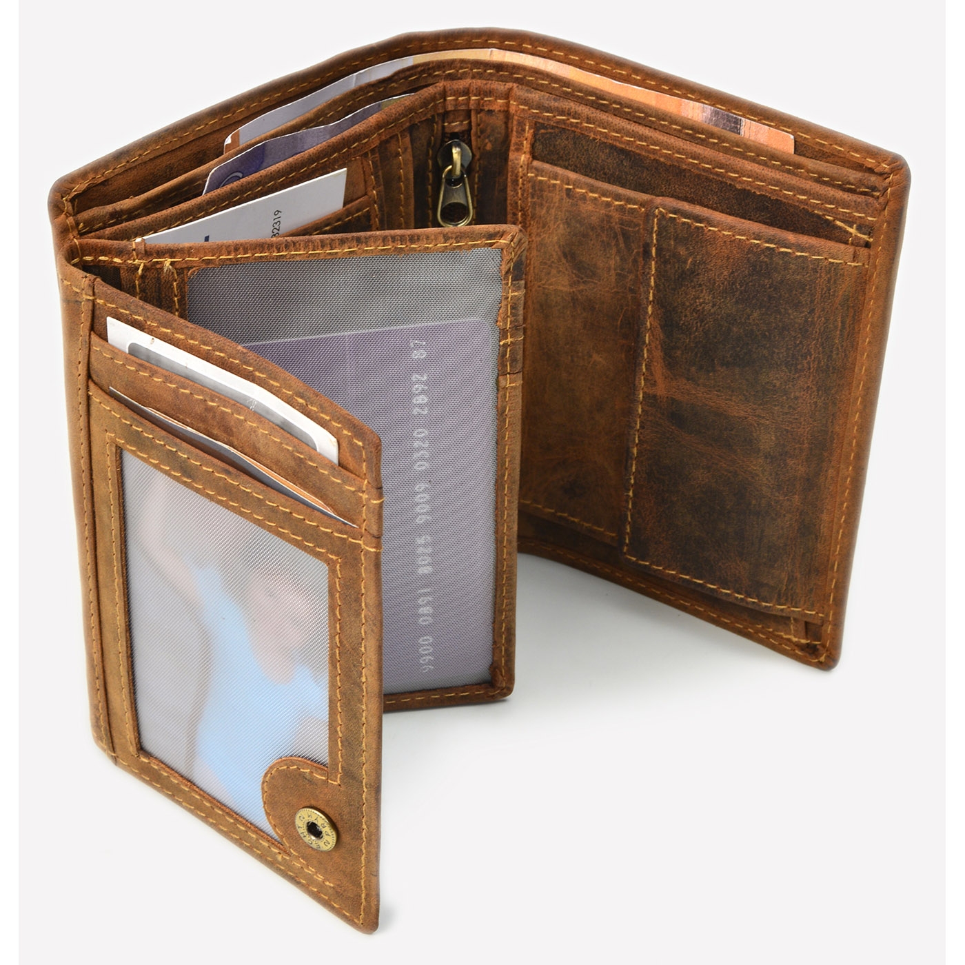 Mit Logo-Prägung. 7 Kartenfächer, 2 Scheinfächer, 1 Reißverschluss-Sicherheits-Scheinfach, 3 Einsteckfächer, 3 Sichtfensterfächer, Kleingeldfach mit Lederboden. Mit RFID Schutz - verhindert das ungewollte Auslesen Ihrer Daten. In schöner Geschenkbox. Maße: 13 x 10cm