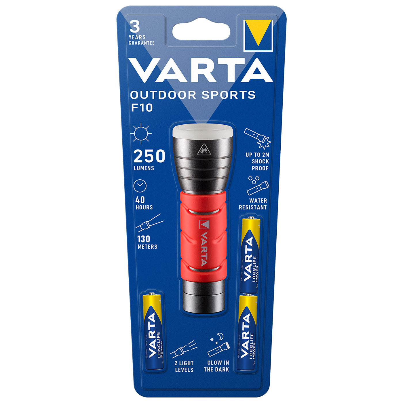 Die Outdoor Sports F10 ist die perfekte Leuchte für jedes Abenteuer, sie bietet hervorragende Outdoor-Eigenschaften wie Wasser- und Staubschutz, helle Trendfarben und nützliche Features wie ein nachleuchtender Ring. Inkl. VARTA Batterietype: 3 x Longlife Power AAA, Gewicht inkl. Batterien: 158,3g, Länge: 12,2cm, Durchmesser (Leuchtkopf): 4cm.