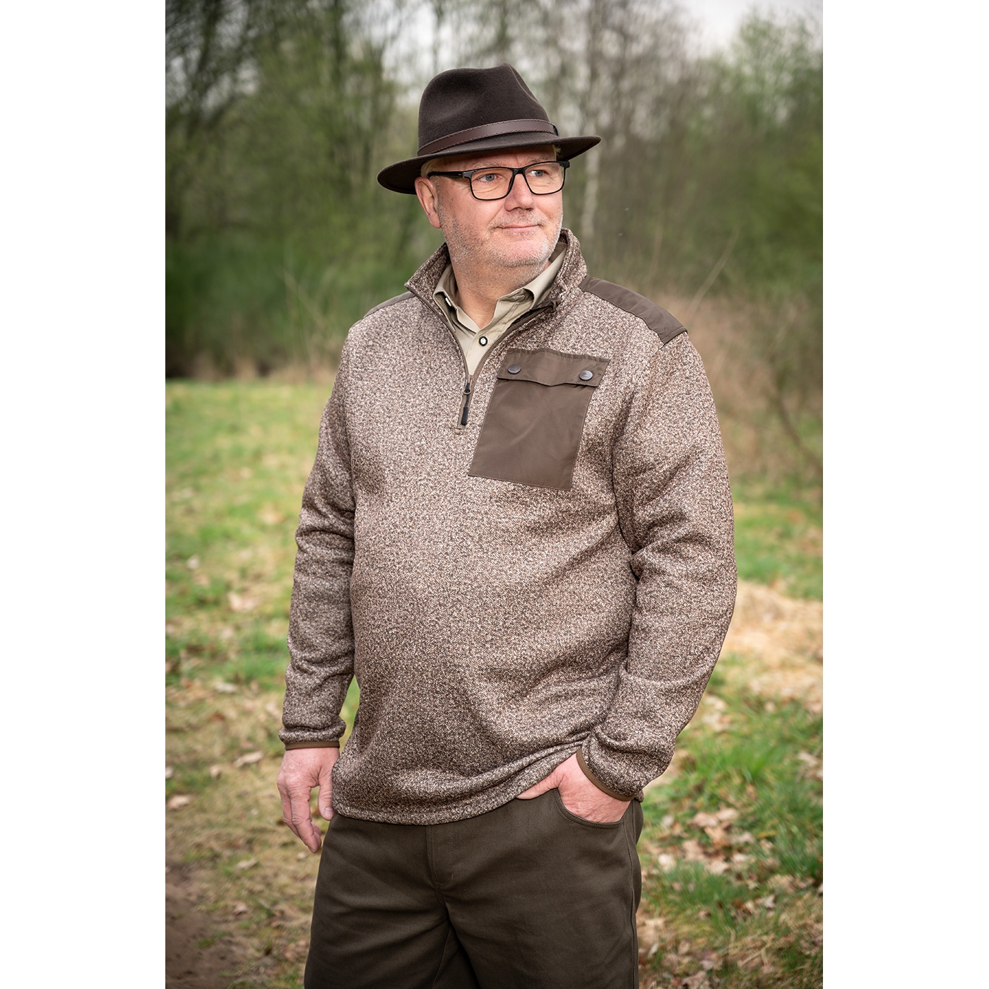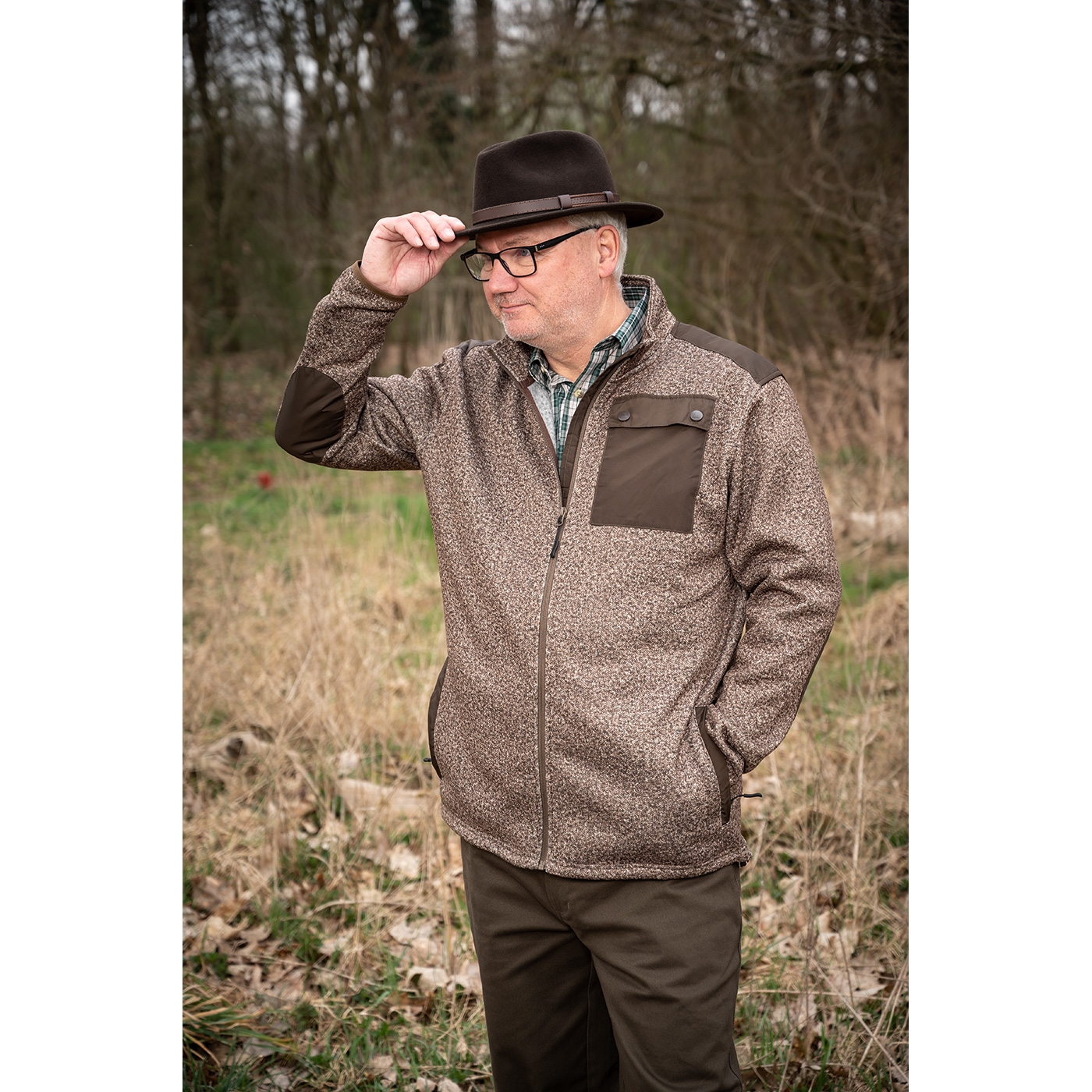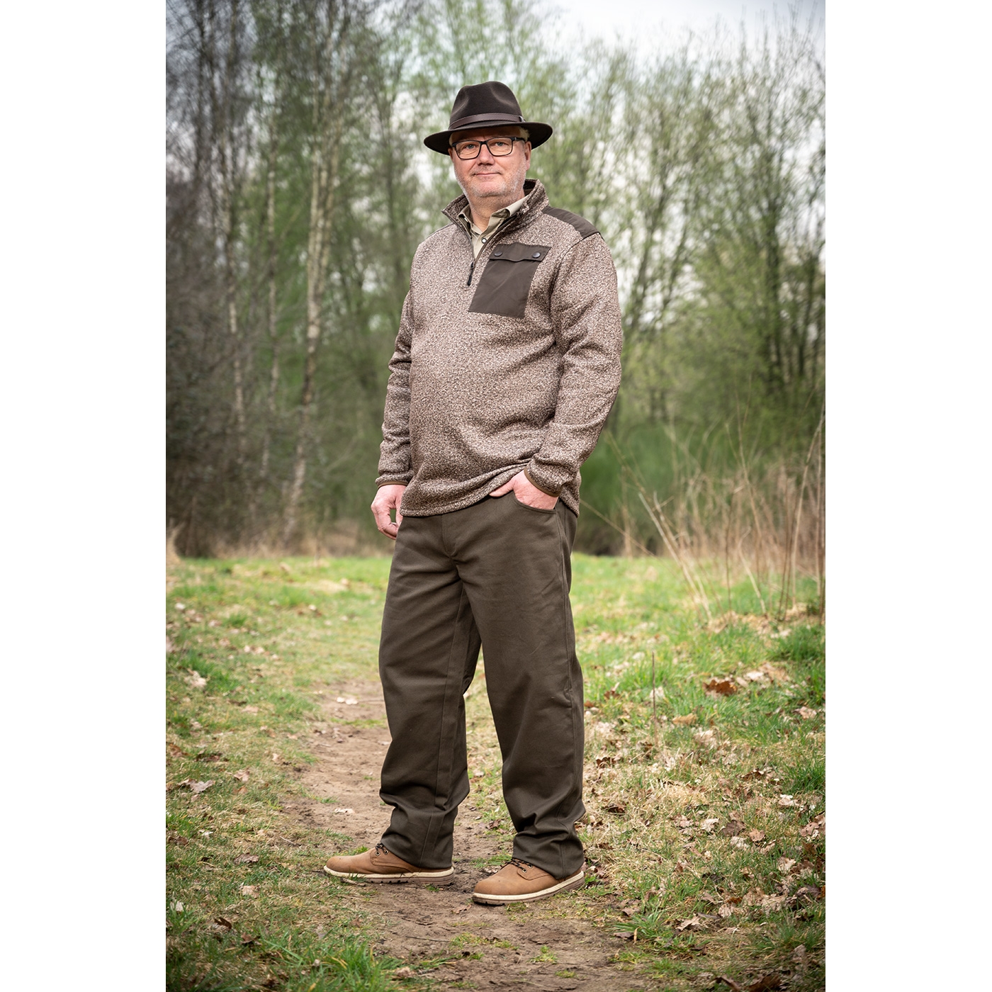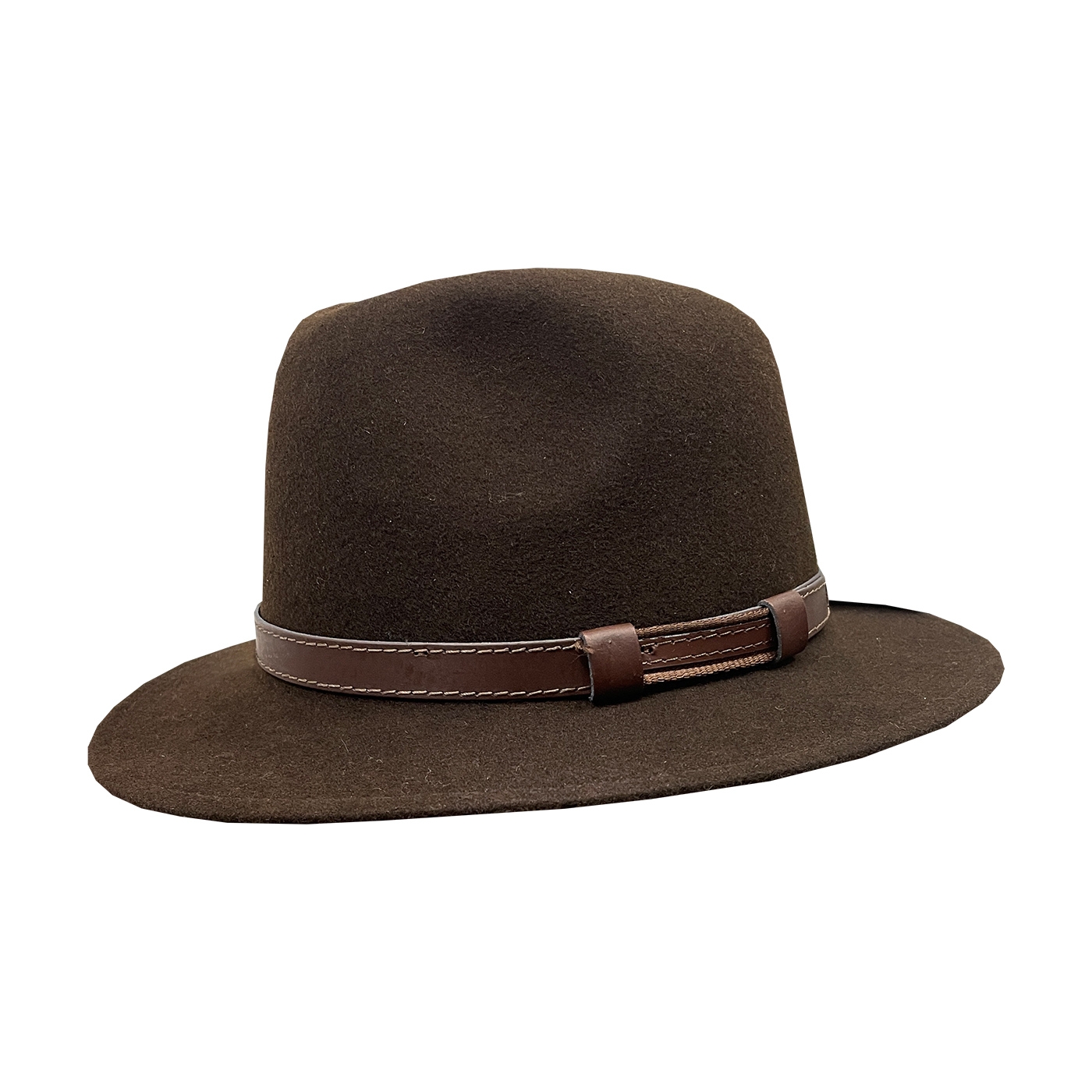 Klassischer Filzhut, breite Krempe, wasserabweisend, knautschbar und rollbar, kann problemlos mit wenigen Handgriffen wieder in Form gebracht werden, mit Leder-Garnitur.