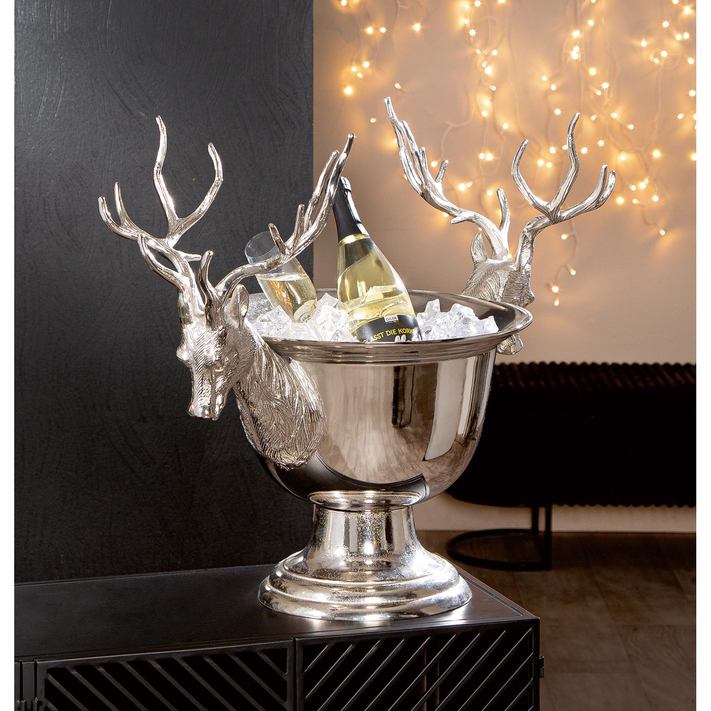 Höchst dekorative, edle, silberfarbene Schüssel aus Aluminium, die als Sektkühler oder als Weinkühler Ihren Feierlichkeiten den nötigen Schliff gibt. Mit Filzgleiter unter dem Fuß, um Kratzer zu vermeiden