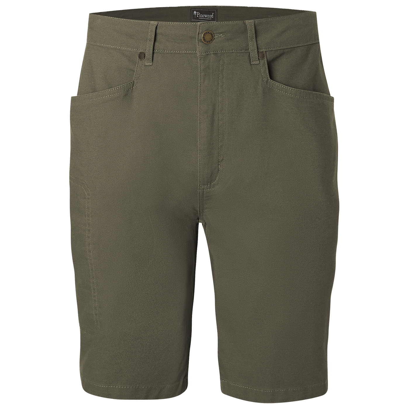 Die Shorts Värnamo Vintage Canvas von Pinewood im klassischen Design besticht durch Tragekomfort und Funktionalität. Bequem und vielseitig aus strapazierfähigem 4-Wege-Stretch. Das vorgewaschene Canvas-Material ist weich, aber robust. Elastischer Bund mit Gürtelschlaufen für optimale Passform und Bewegungsfreiheit. Die funktionalen Taschen sorgen für genügend Stauraum, 2 seitliche Einschubtaschen, 2 Gesäßtaschen mit Druckknopfverschluss und 1 Beintasche mit Reißverschluss, machen die Shorts zur idealen Sommerhose. Lässig und dezent genug für den Alltag, funktional genug für Jagd und Outdoor an heißen Sommertagen.