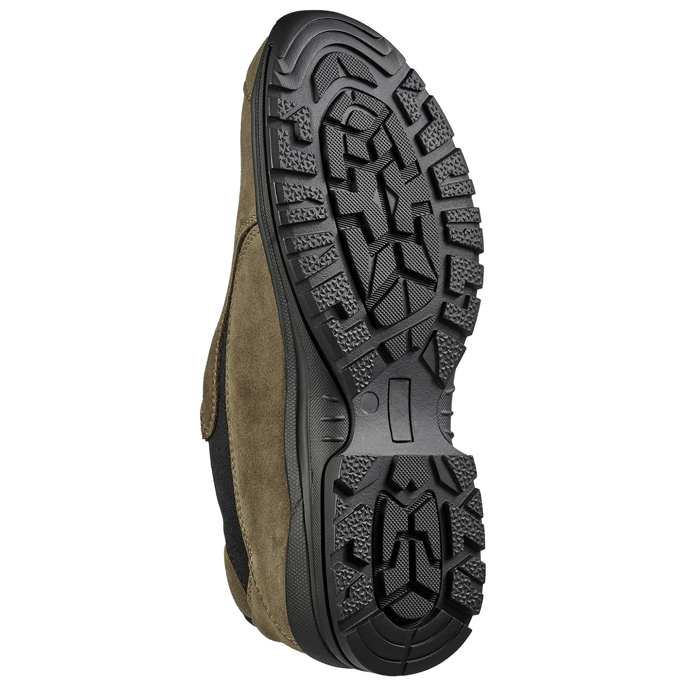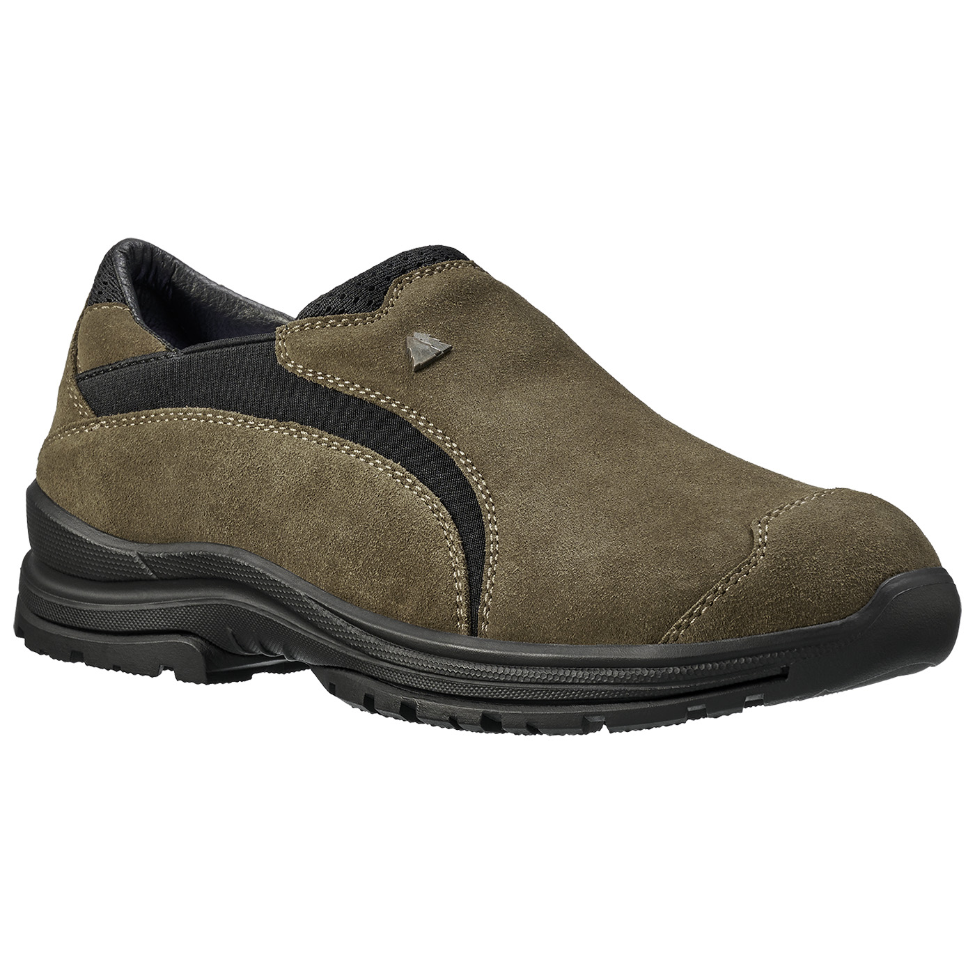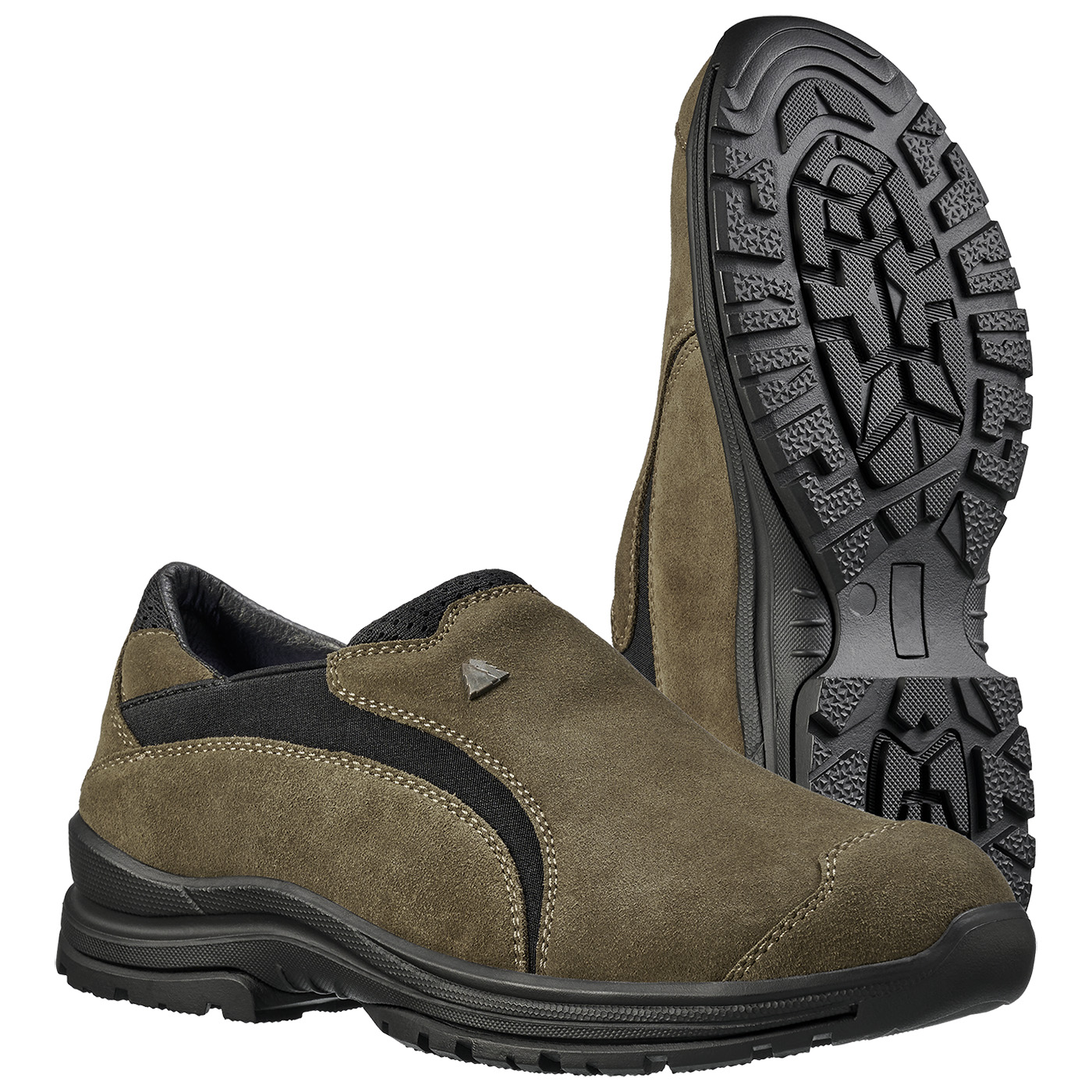 Bequemer, leichter Slipper aus Nubukleder mit hohem Lauf- und Tragekomfort, bietet optimalen Halt und Stabilität am Fuß, bequemer Einstieg durch seitliche Gummizüge, auswechselbares Fußbett und robuste, griffige Gummiprofilsohle, sowie mit Extra-Stoßschutz an der Fußspitze.