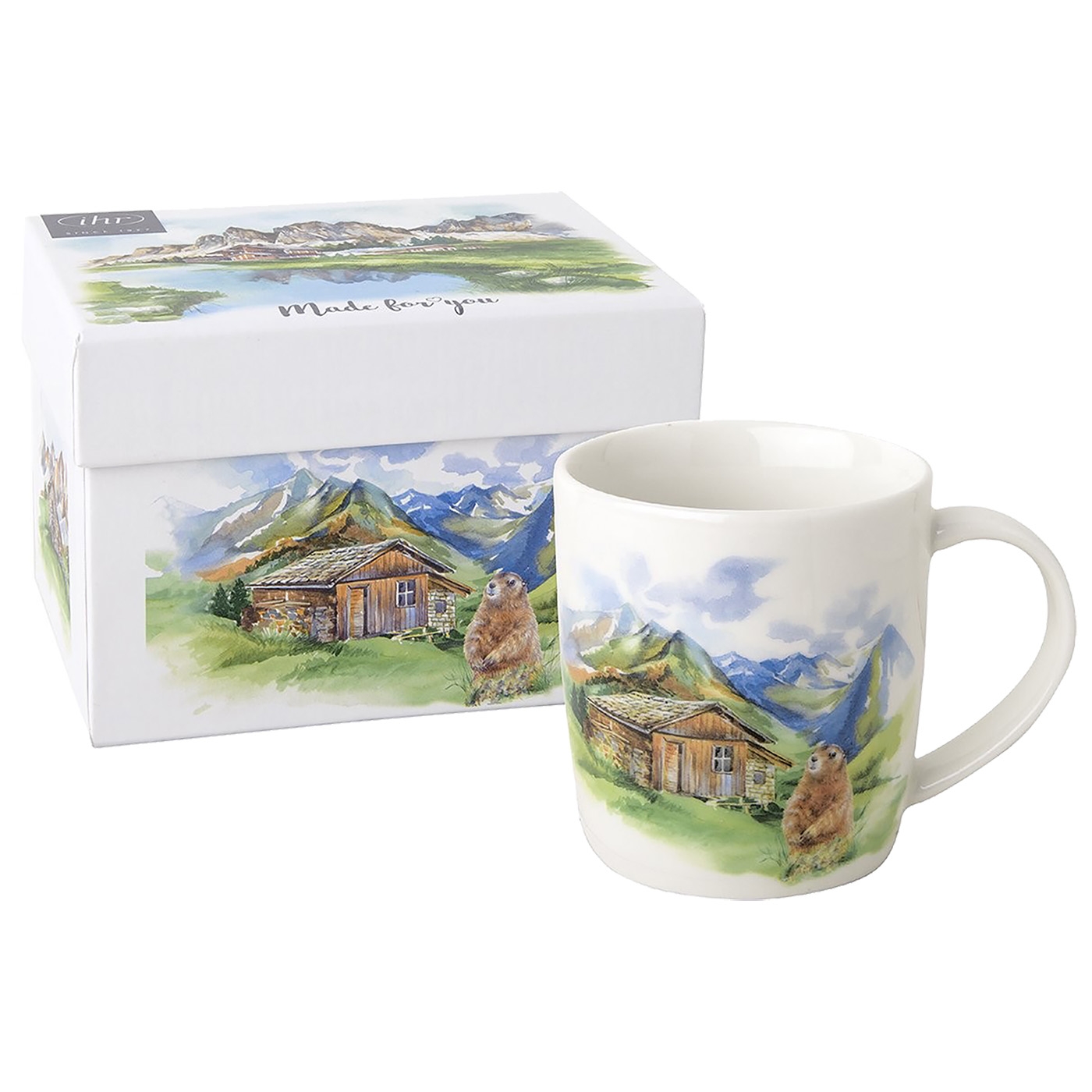 Porzellanbecher mit Wildmotiven, spülmaschinen - und mikrowellengeeignet, lebensmittelecht, In schöner Geschenkbox. Maße ca. Ø 8 x H 9 cm, Füllgutvolumen: 300 ml