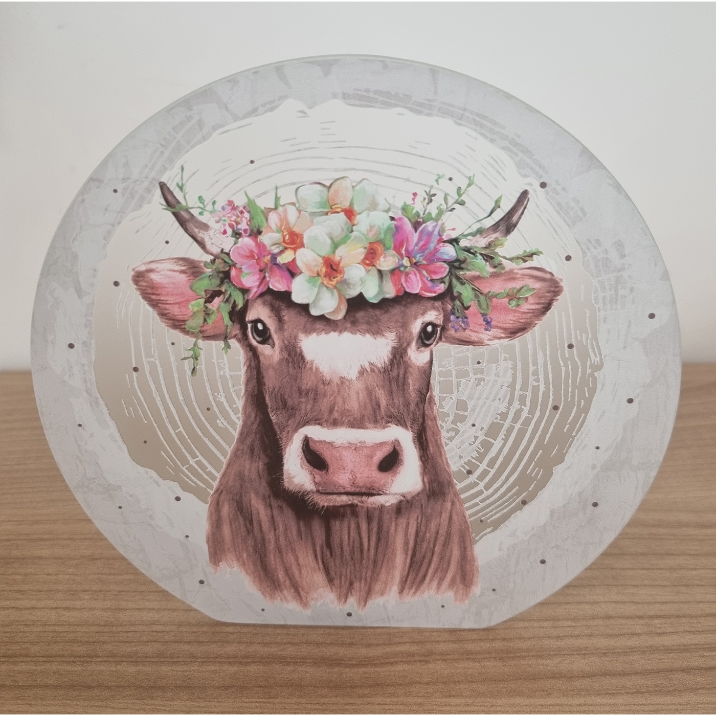 Stimmungsvoller runder Glas-Teelichtleuchter aus der Serie Kuh „Adelheid, (Teelicht ist nicht im Lieferumfang enthalten). Durchmesser 15 cm