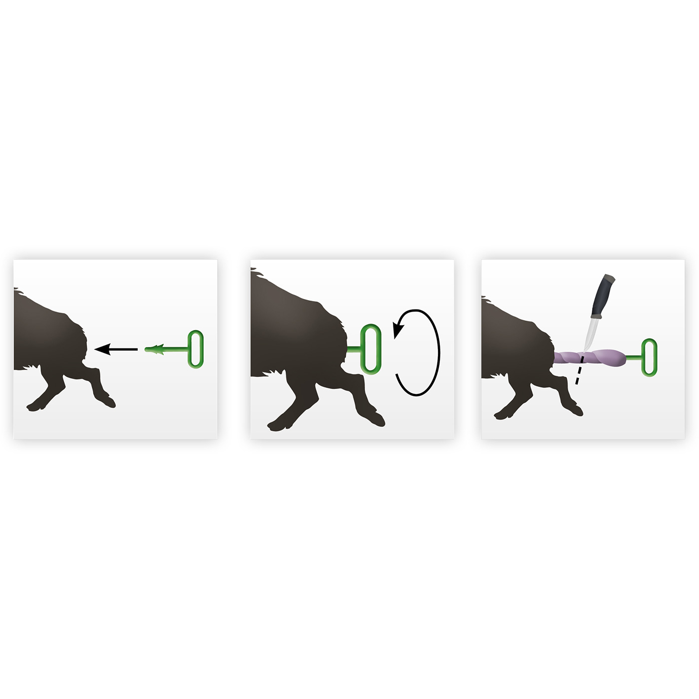 Der Waidlochauslöser ist die ideale Ringelhilfe zum einfachen Auslösen des Waidloches. Das Auslösen des Waidlochs durch Ringeln mit dem Waidlochauslöser bietet eine bessere Wildbretqualität und sorgt für mehr Hygiene. Durch die Entnahme der Eingeweide in Richtung des Hauptes werden die Keulen nicht verunreinigt und müssen nicht abgeschärft werden. Einfach in das Waidloch einführen, drehen, herausziehen und die Eingeweide abschärfen. Maße: 21x14x4cm