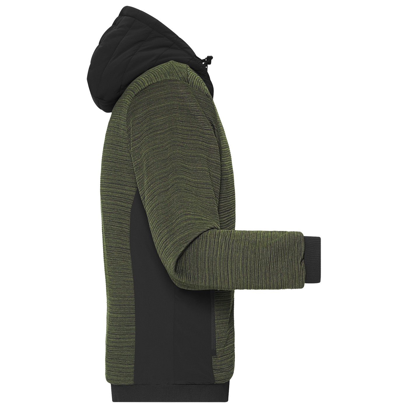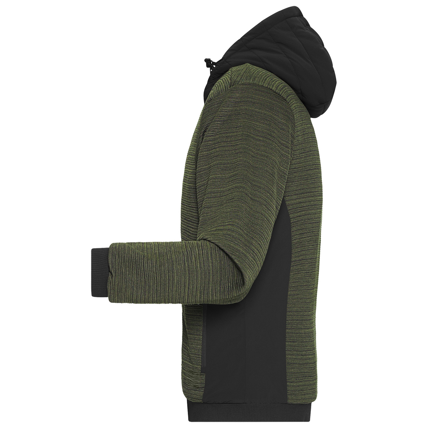 Leicht taillierte Jacke im attraktiven Materialmix. Pflegeleichter Strickfleece kombiniert mit elastischen Einsätzen, mit wärmender sorona®AURA Wattierung (aus nachwachsenden Rohstoffen). Jacke mit angeschnittener, verstellbarer Kapuze, durchgehendem YKK Frontreißverschluss mit Kinnschutz, 2 Seitentaschen mit Reißverschluss, 1 Innentasche mit Klettverschluss und elastischem Bündchen an Ärmeln und Saum. Ärmel mit elastischem Futter für optimale Bewegungsfreiheit. Innenverarbeitung mit abgesteppter Wattierung im Vorder- und Rückenteil sowie in der Kapuze.
