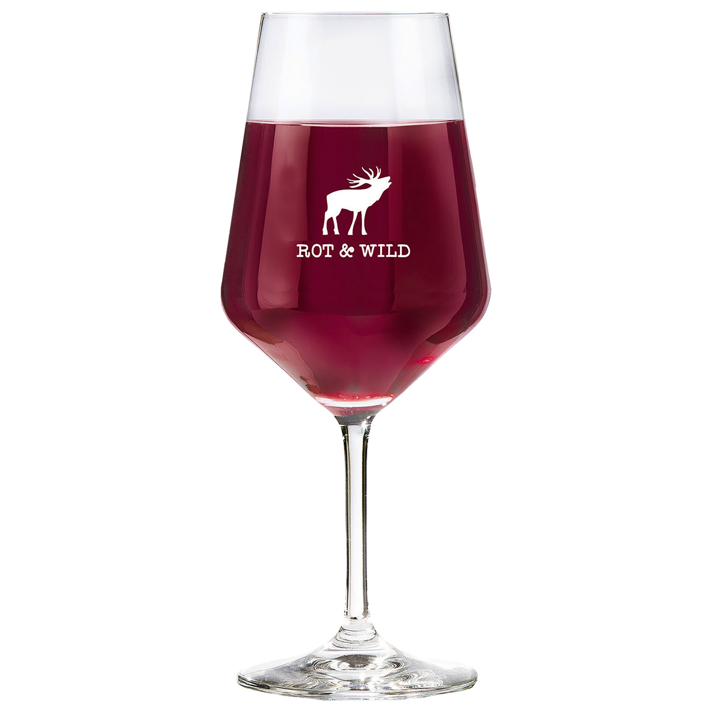 Rotweingläser aus deutscher Herstellung, schlicht aber stilvoll. Außergewöhnlich attraktiv mit Hirschmotiv und Schriftzug. Nachhaltig verpackt. Maße: 22,3 x 9,2 cm