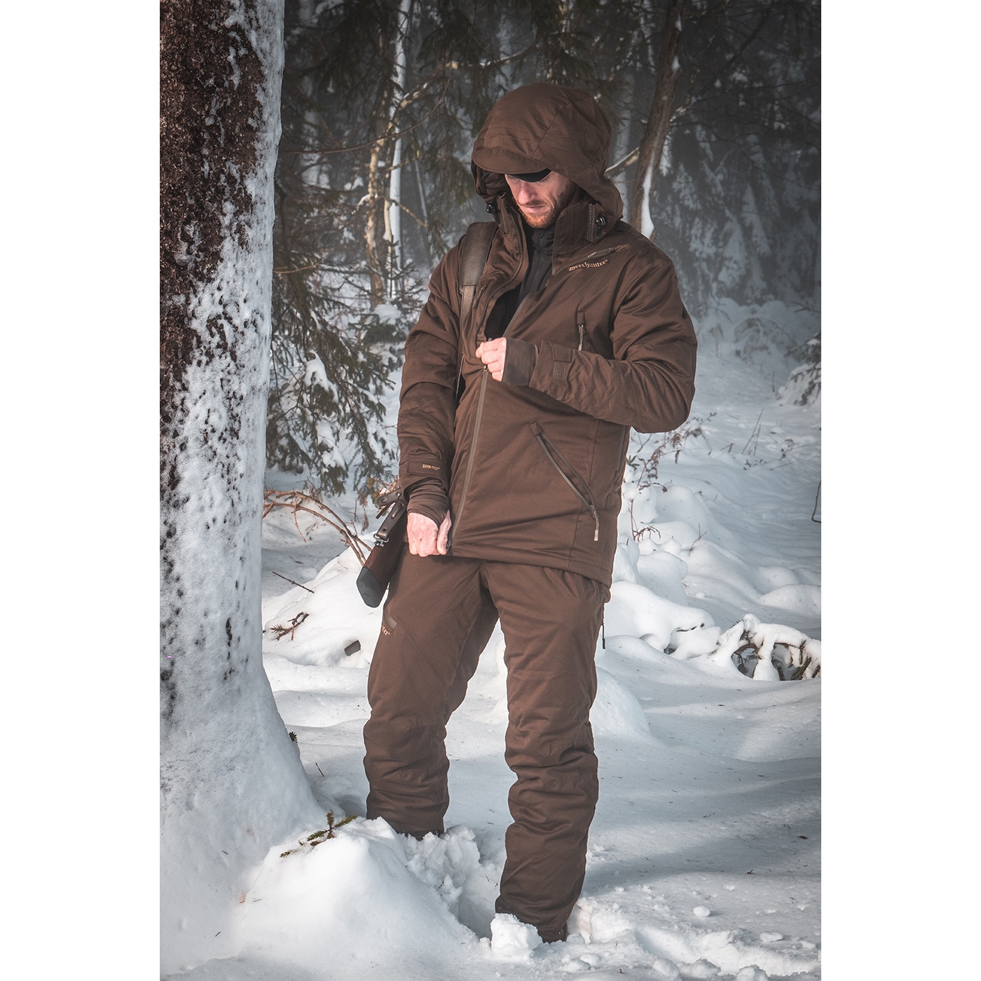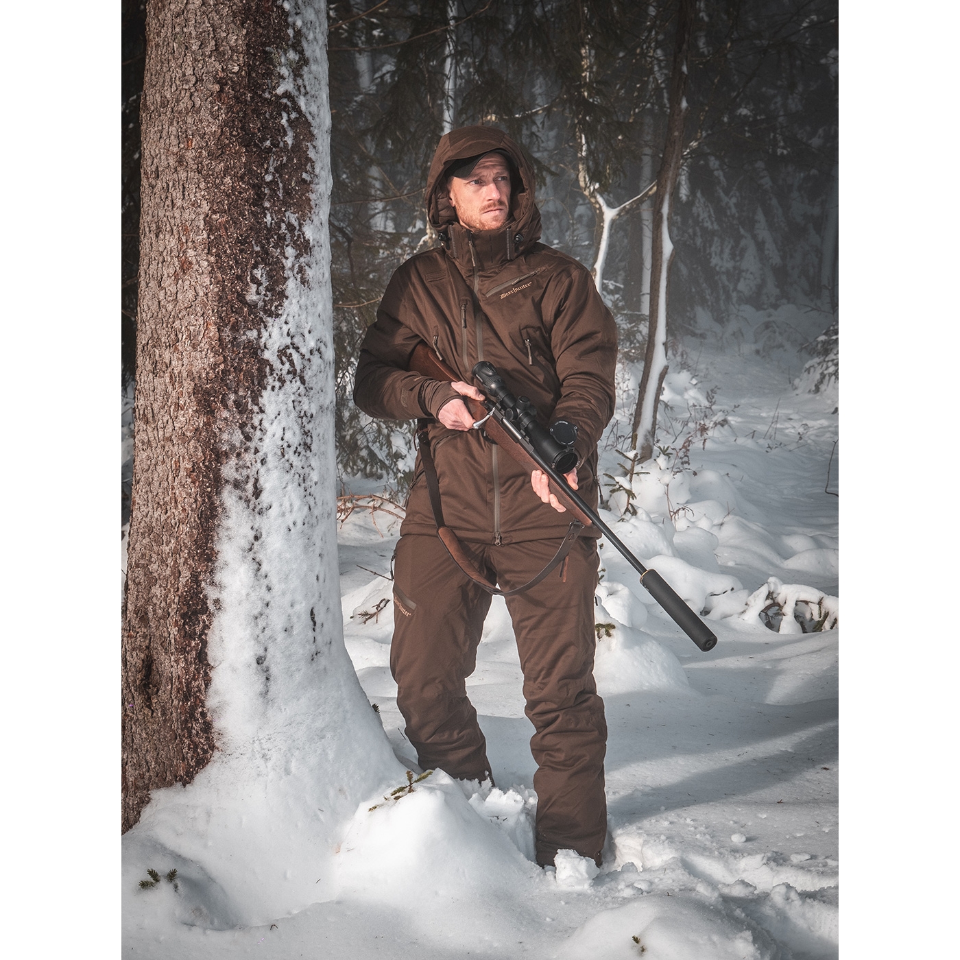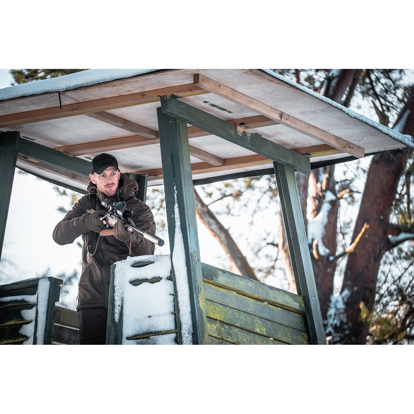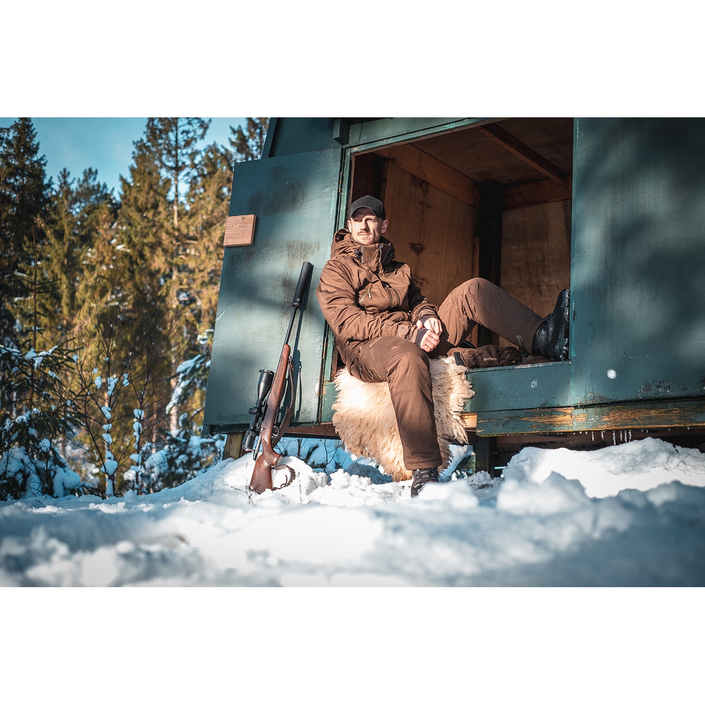 Die Excape Winter Jacke bietet alles, was man sich von einer leichten, atmungsaktiven Jacke nur wünschen kann: von der abnehmbaren Kapuze bis hin zur verdeckten Gesichtsmaske im Kragen. Diese funktionale Jacke ist wasserfest, winddicht und wasserabweisend, hat außerdem wasserdichte Reißverschlüsse für die Funkgerätetasche, die Brusttasche, die 2 Vordertaschen, die 2 Handwärmertaschen und den mittigen YKK-Zweiwege-Reißverschluss, sie verfügt zudem über 2 Innentaschen und bietet so ausreichend Stauraum für alle wichtigen Utensilien. Die verstellbaren Ärmelbündchen und ein verstellbarer Kordelzug am unteren Jackensaum sorgen für eine wirklich individuelle, bequeme Passform. Sollte das Wetter einmal schlechter sein als erwartet, ist das mit der Excape Winterjacke kein Problem. Sie ist nicht nur vollständig isoliert, sondern hat auch eine zusätzliche Wattierung am Rücken, die an kalten Jagdtagen morgens und abends für Wärme sorgt. Für eine gute Belüftung bietet diese Jacke vorne am Kragen, unter den Armen und am Nacken wasserdichte Belüftungsreißverschlüsse. Eine Schlaufe zur Befestigung des Funkgeräts, eine elastische Schlaufe für die Antenne, vorgeformten Ellbogen und Sturmbündchen runden die Ausstattung dieser Jagdjacke auf hervorragende Weise ab.