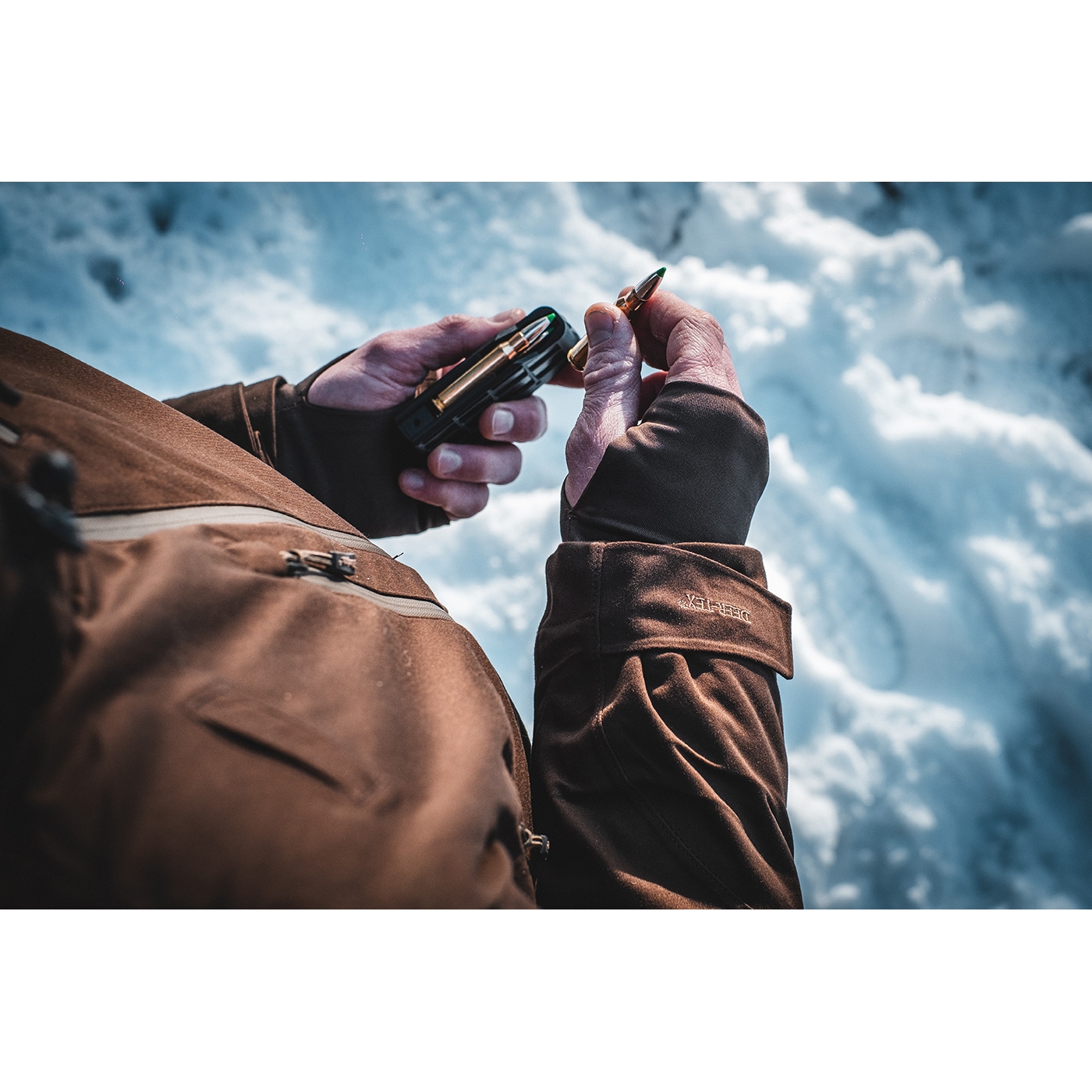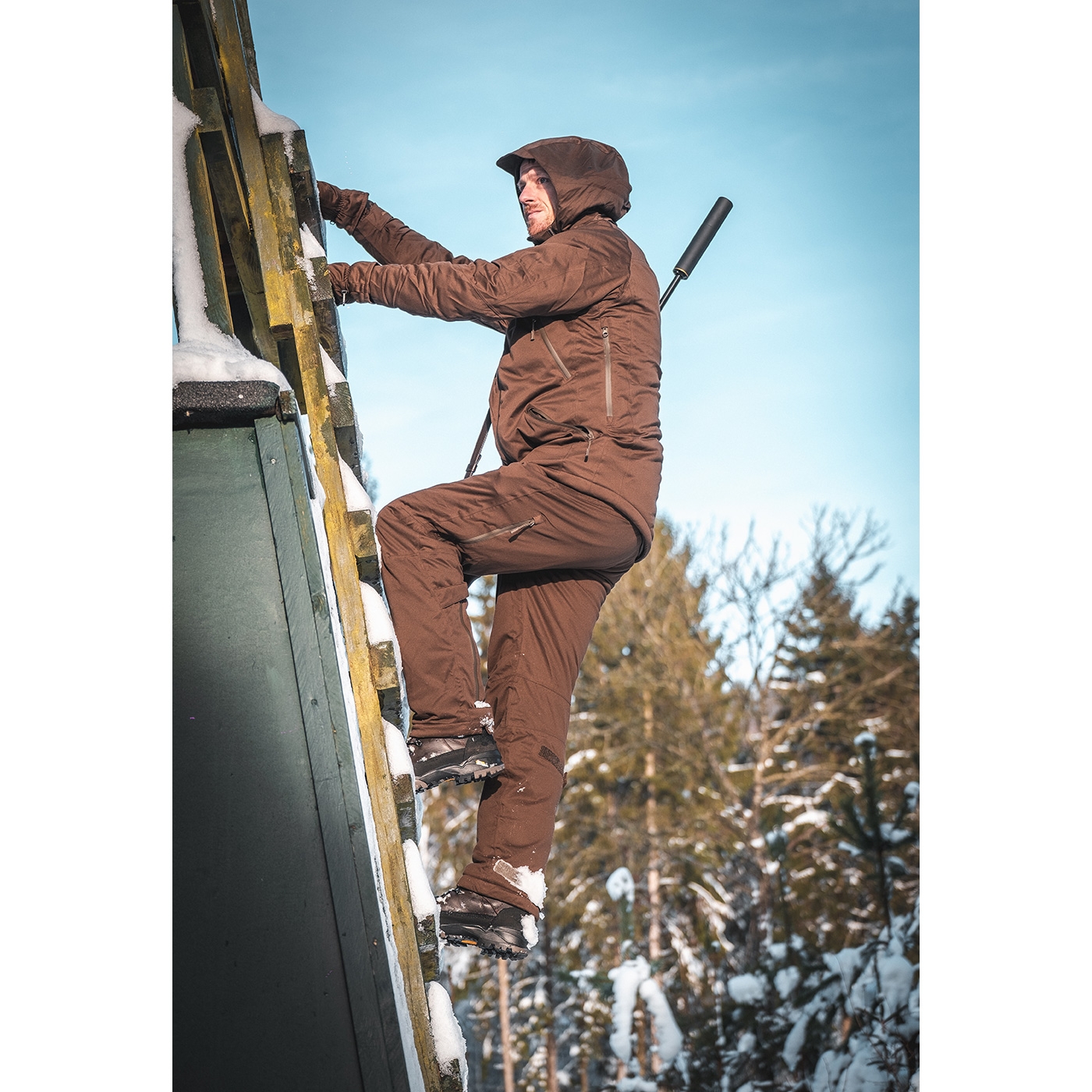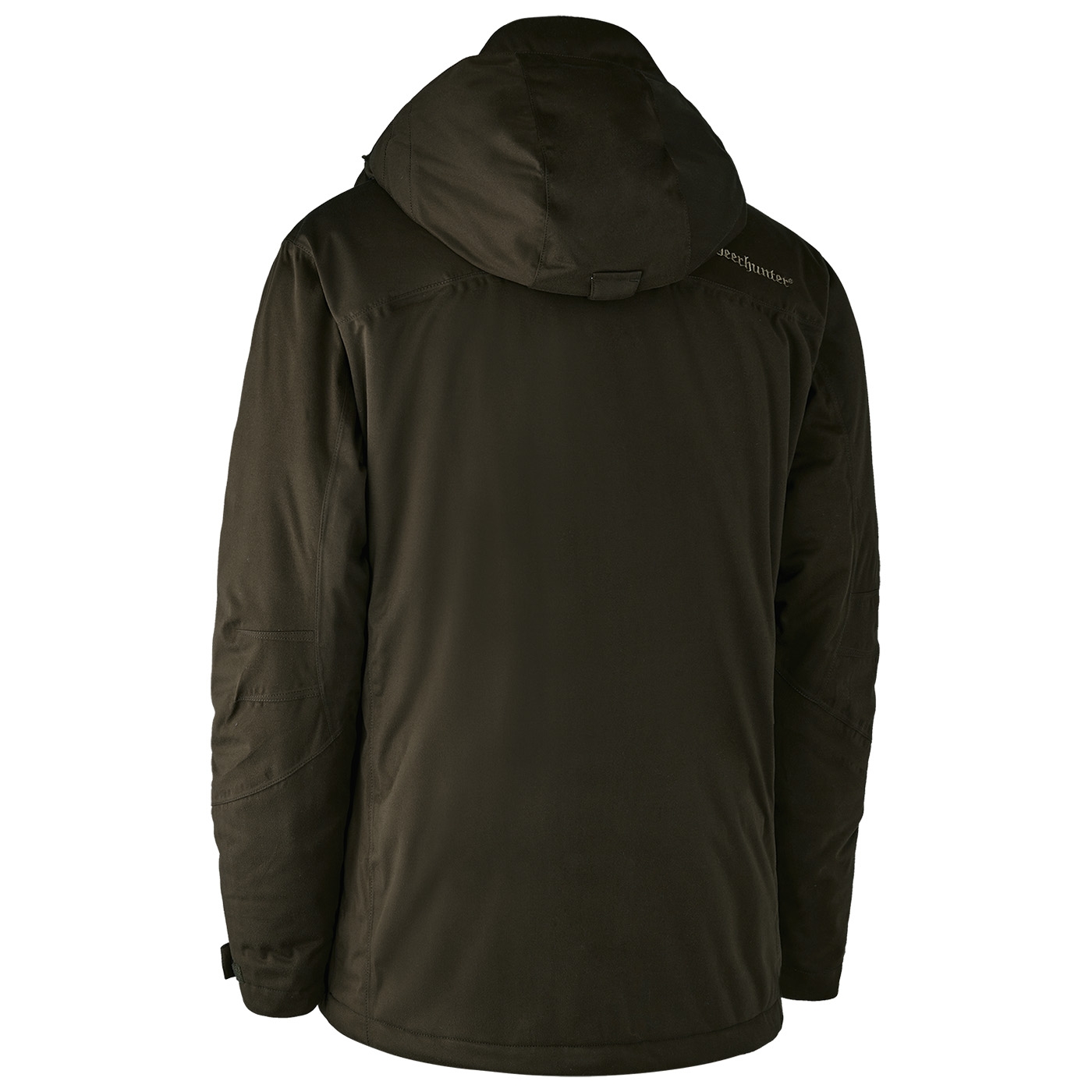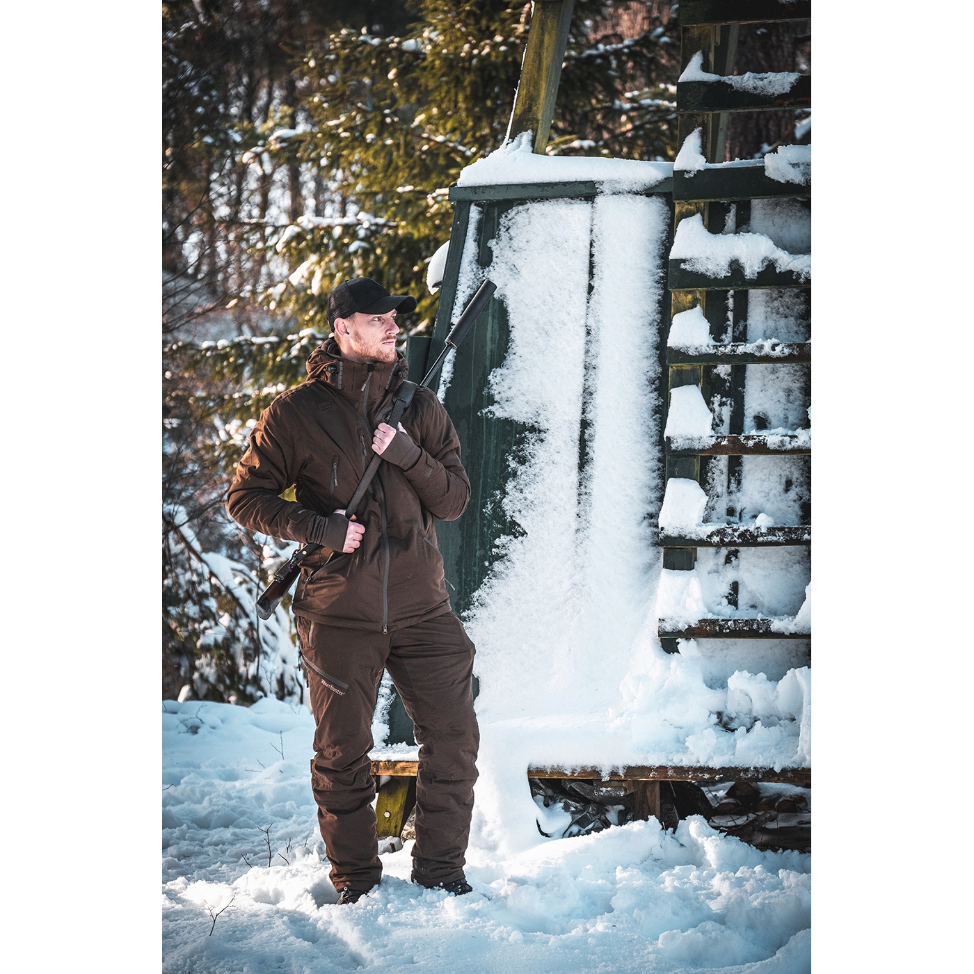 Die Excape Winter Jacke bietet alles, was man sich von einer leichten, atmungsaktiven Jacke nur wünschen kann: von der abnehmbaren Kapuze bis hin zur verdeckten Gesichtsmaske im Kragen. Diese funktionale Jacke ist wasserfest, winddicht und wasserabweisend, hat außerdem wasserdichte Reißverschlüsse für die Funkgerätetasche, die Brusttasche, die 2 Vordertaschen, die 2 Handwärmertaschen und den mittigen YKK-Zweiwege-Reißverschluss, sie verfügt zudem über 2 Innentaschen und bietet so ausreichend Stauraum für alle wichtigen Utensilien. Die verstellbaren Ärmelbündchen und ein verstellbarer Kordelzug am unteren Jackensaum sorgen für eine wirklich individuelle, bequeme Passform. Sollte das Wetter einmal schlechter sein als erwartet, ist das mit der Excape Winterjacke kein Problem. Sie ist nicht nur vollständig isoliert, sondern hat auch eine zusätzliche Wattierung am Rücken, die an kalten Jagdtagen morgens und abends für Wärme sorgt. Für eine gute Belüftung bietet diese Jacke vorne am Kragen, unter den Armen und am Nacken wasserdichte Belüftungsreißverschlüsse. Eine Schlaufe zur Befestigung des Funkgeräts, eine elastische Schlaufe für die Antenne, vorgeformten Ellbogen und Sturmbündchen runden die Ausstattung dieser Jagdjacke auf hervorragende Weise ab.