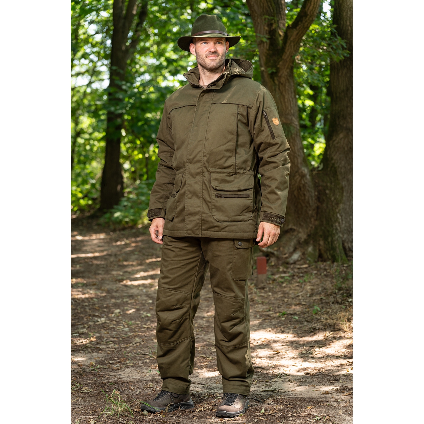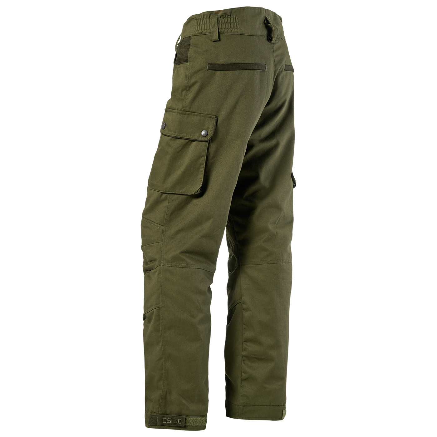 Die Hubertus-Outdoorhose OS 30 Membrane Hirschfänger ist eine hochfunktionelle, leicht gefütterte, warme Hose – die ideal Hose für die Jagd in den kalten Jahreszeiten im Herbst und Winter. Die bequeme, gut geschnittene Jagdhose aus geräuscharme Oberstoff mit Miporex Membrane ist atmungsaktiv, wind- und wasserdicht, sehr strapazierfähig und komfortabel. Die Outdoorhose mit Komfortbund und erhöhtem Rückenteil sorgt für den optimalen Sitz auch bei starker Aktivität, ist somit besonders für die Bewegungsjagd, Pirsch und anspruchsvolle Revierarbeiten geeignet. Funktionale, durchdachte Taschen gewährleisten ausreichend Stauraum für wichtige Utensilien, 2 seitliche Einschubtaschen, 1 Gesäßtasche mit Reißverschluss, 2 Oberschenkeltaschen mit Patte und Druckknöpfen, sowie 1 Messertasche am Oberschenkel. Die Beinenden sind verstellbar.