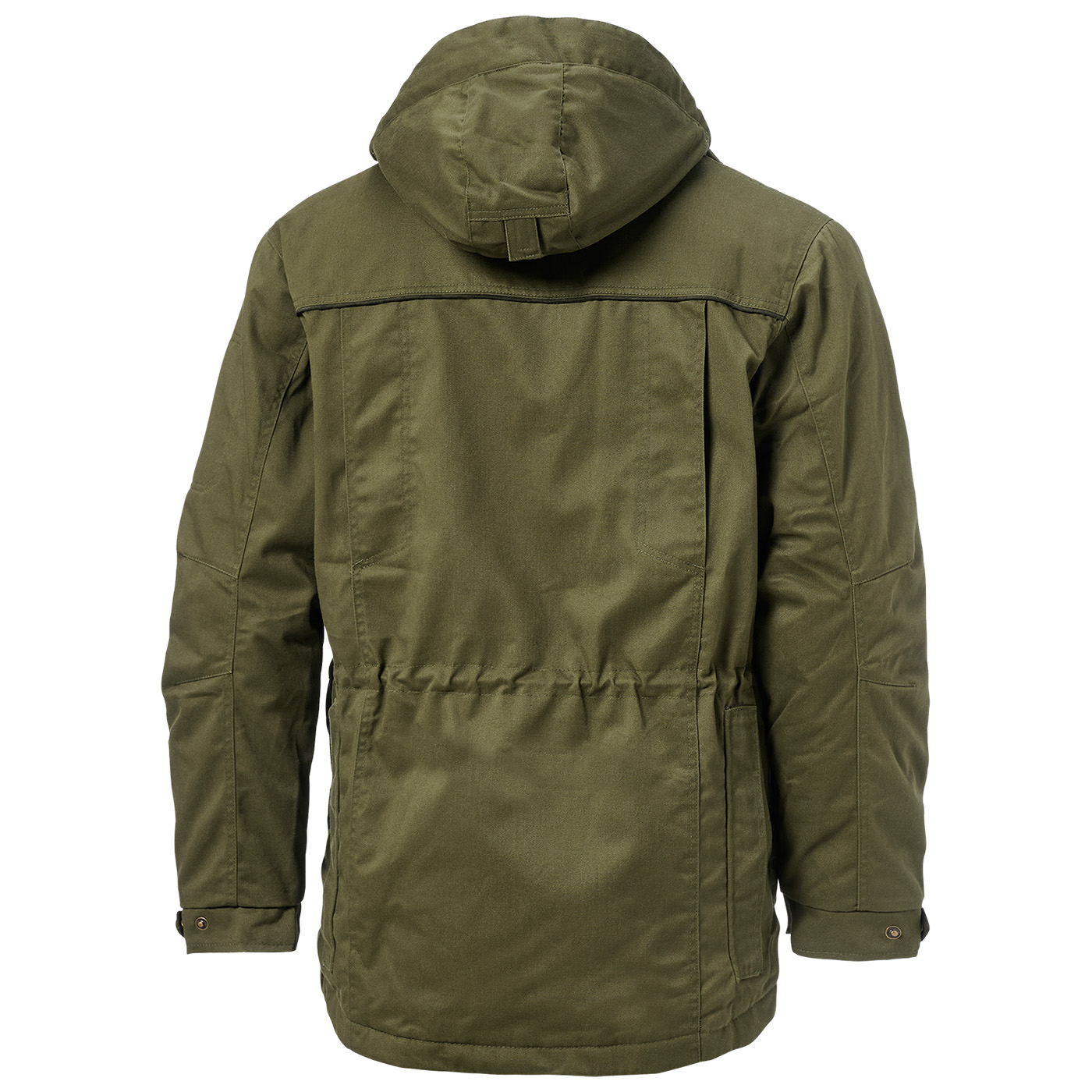 Geräuscharme, robuste Outdoor-Jacke Hirschfänger, wasserdicht, winddicht und atmungsaktiv - bestens geeignet durch ihr OS 30 Material für die winterliche Drück- und Ansitzjagd. Durch die verwendete OS TEX Membrane, das hochwertige, gesteppte Innenfutter und die 3-fach verstellbare, abnehmbare Kapuze bleibt der Träger auch bei ungemütlichen Witterungen optimal geschützt. Funktionale Jacke mit verdecktem 2-Wege Frontreißverschluss und Druckknopfblende. 2 großen Reißverschluss-Einschubtaschen, 2 aufgesetzten Taschen mit zusätzlich integrierten Reißverschlusstaschen für Schlüssel und andere Wertsachen, 1 Napoleon-, 1 Handytasche am linken Oberarm, 2 Innentaschen (1 davon mit Reißverschluss) und 1 rückwärtigen Hasentasche, die von zwei Seiten zugänglich ist. Diese Outdoorjacke mit ihren durchdachten Details wie integriertem Taillenzug, vorgeformten Ärmeln und verstellbaren Armabschluss – bietet eine optimale Passform und einen guten Komfort.