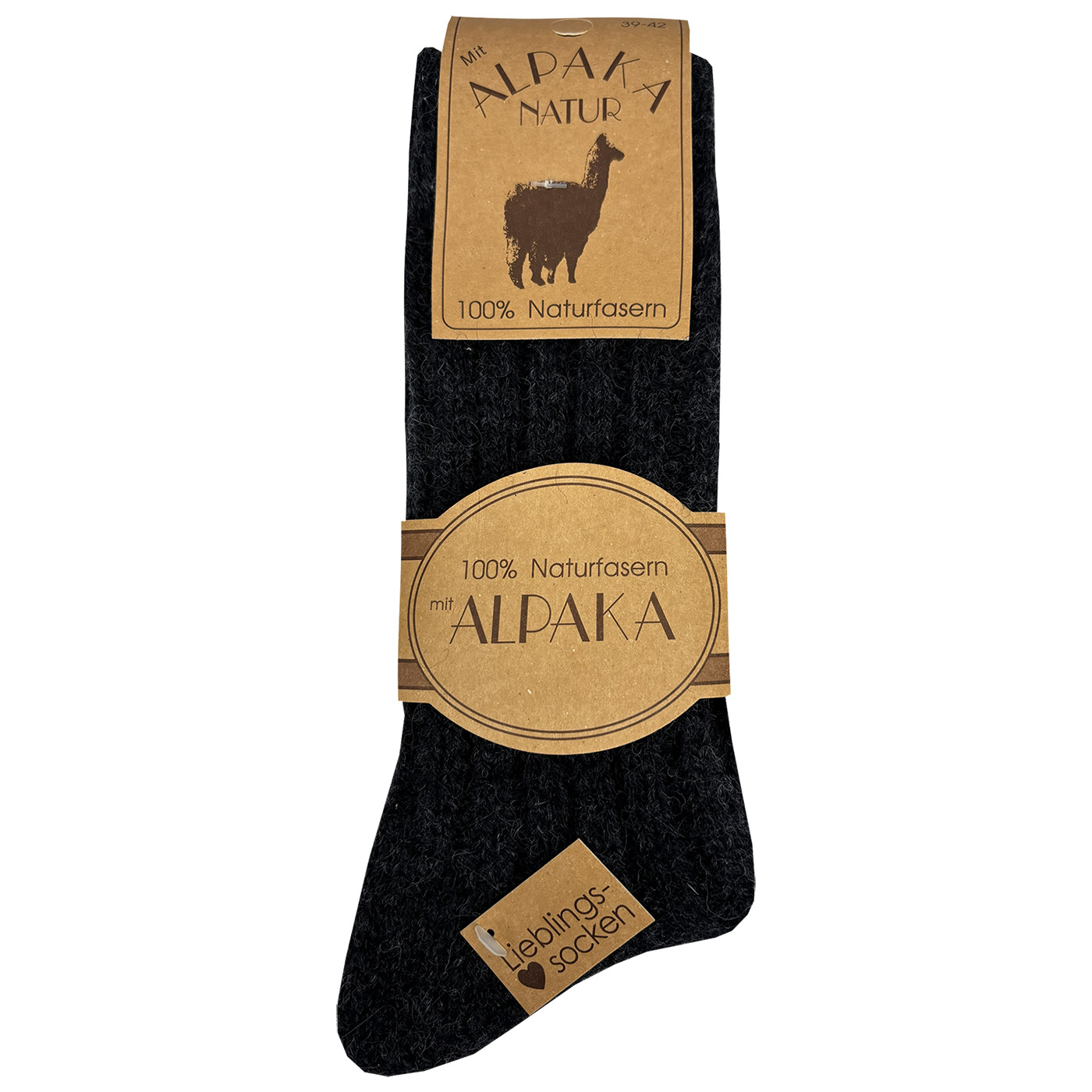 Natur pur! Absolut wärmend und toller "wolliger" Griff. Bestehend aus Schafswolle (65 %) und Alpakawolle (35 %). Ein ganz besonderer natürlicher Luxus für die Füße.